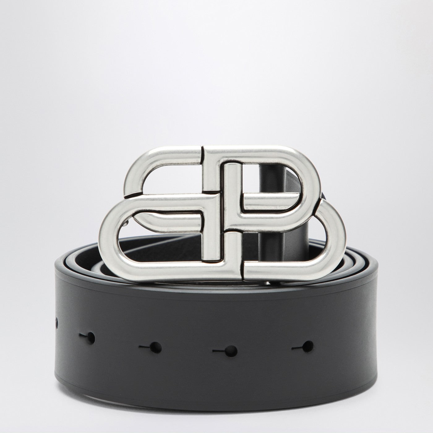 Balenciaga BB Cinturón de piel de ternera negro extra grande