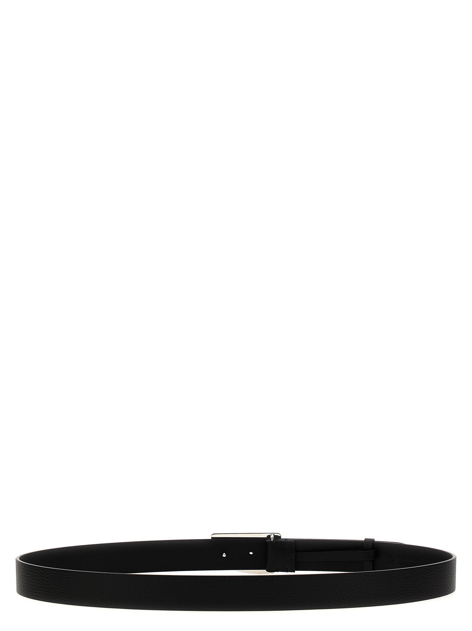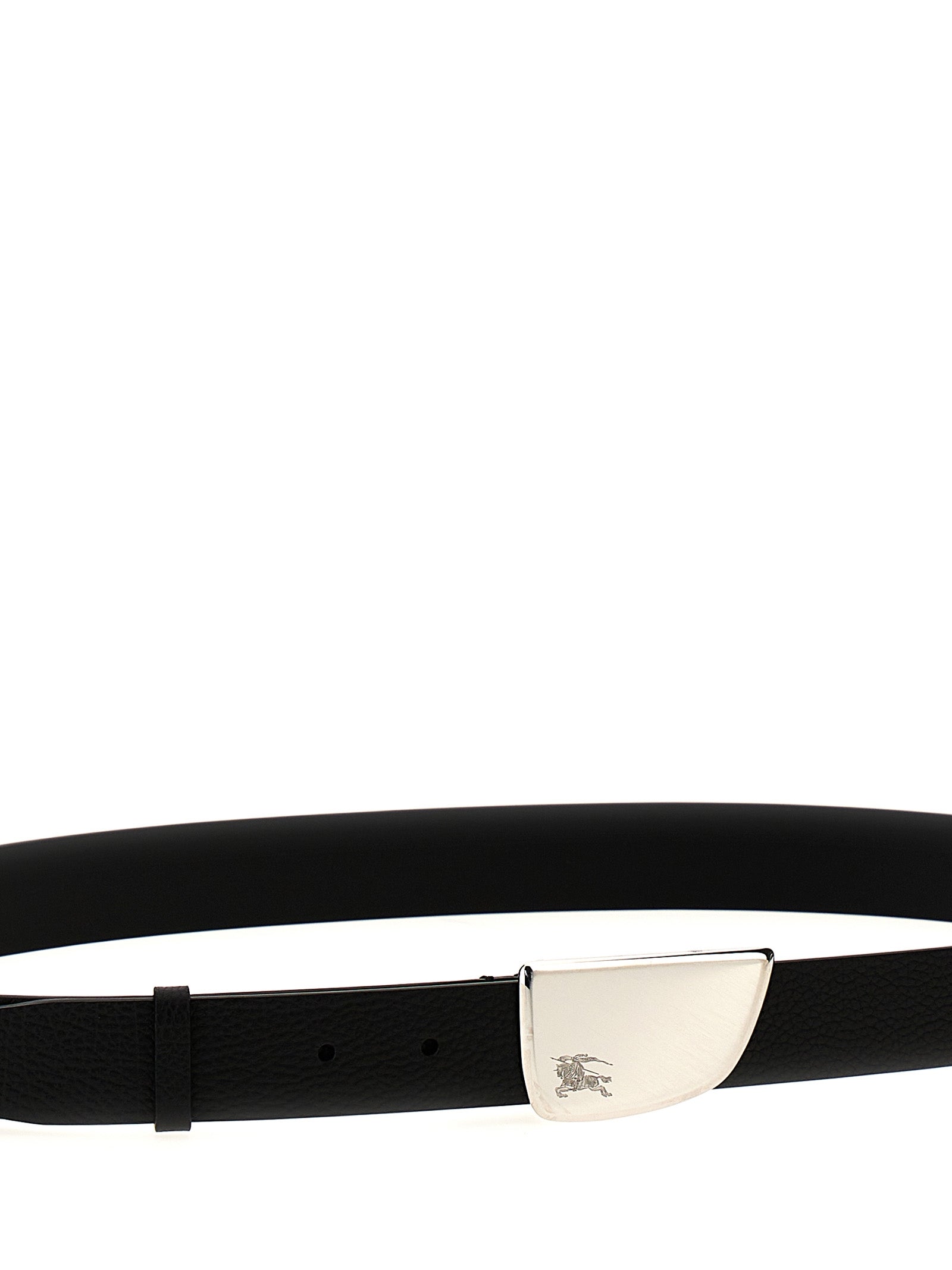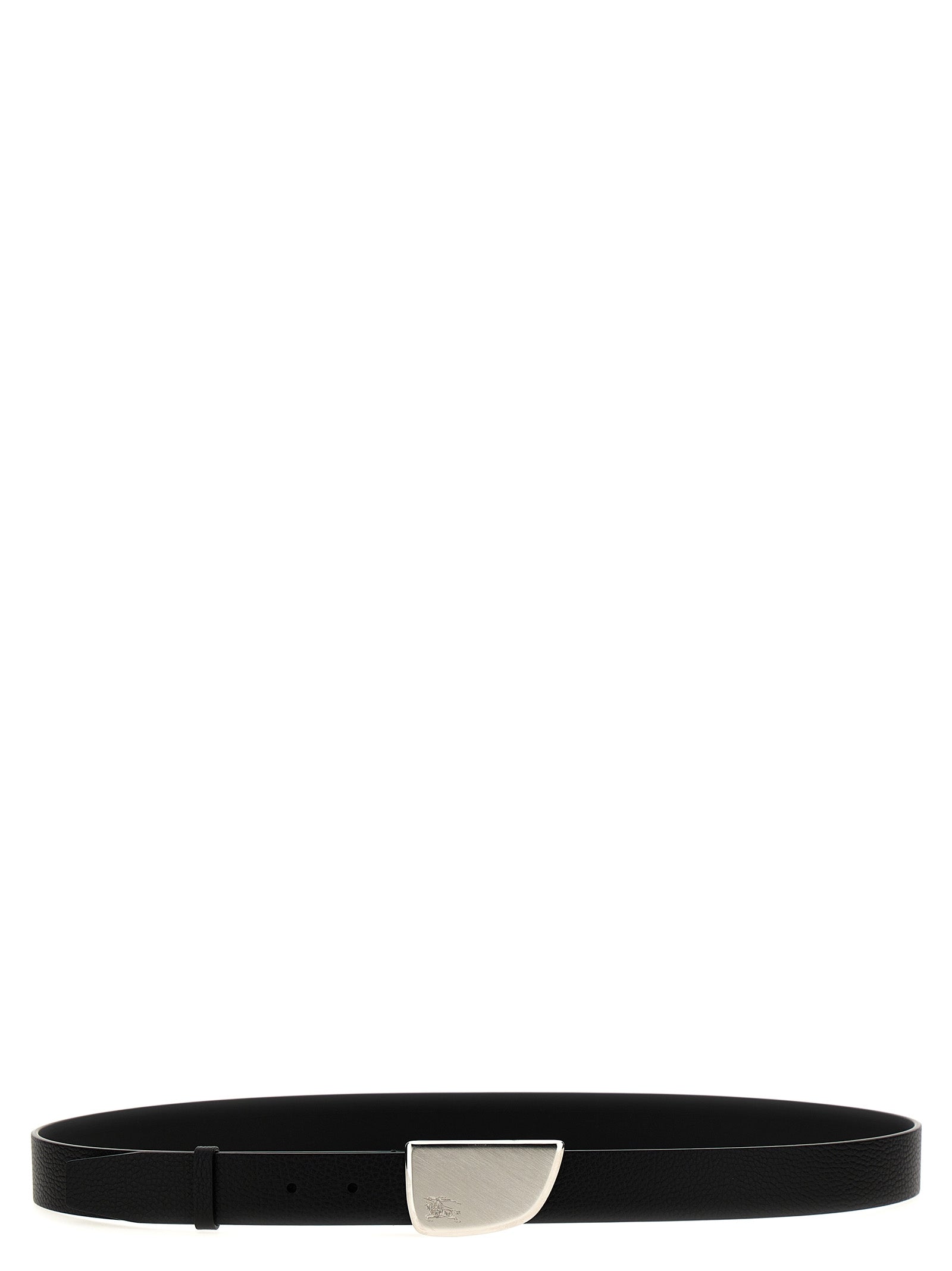 'Shield' Cinturón de cuero martillado con hebilla de metal cepillada con logotipo grabado.
