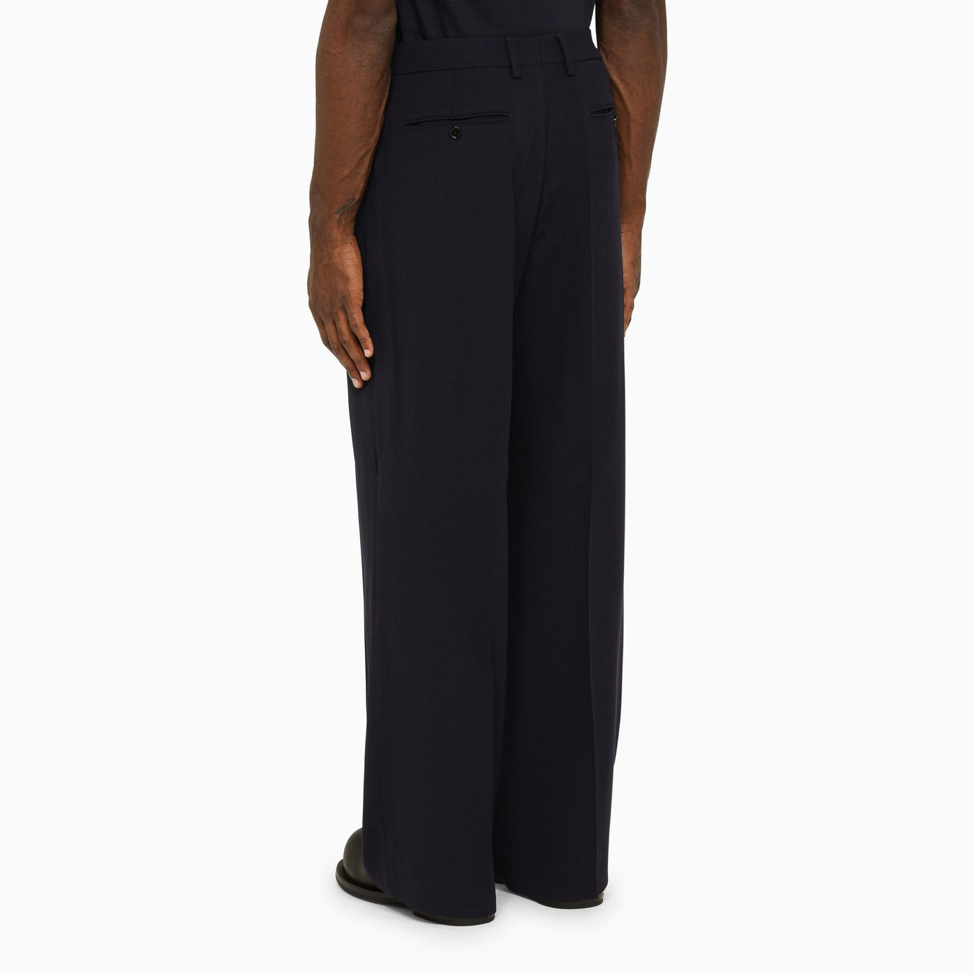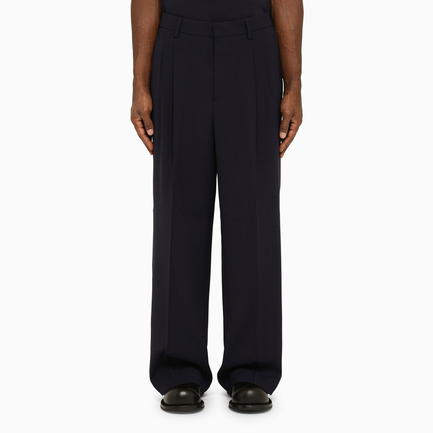Midnight Blue Viscose mezcla pantalones regulares de Ami París con pliegues decorativos, dos bolsillos de fuelle a los lados y dos bolsillos de ribete en la parte posterior.