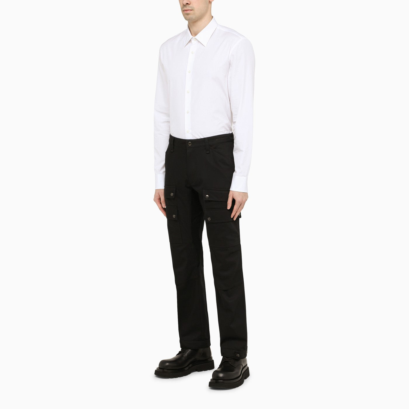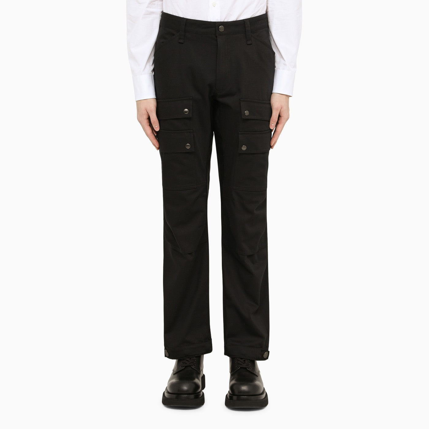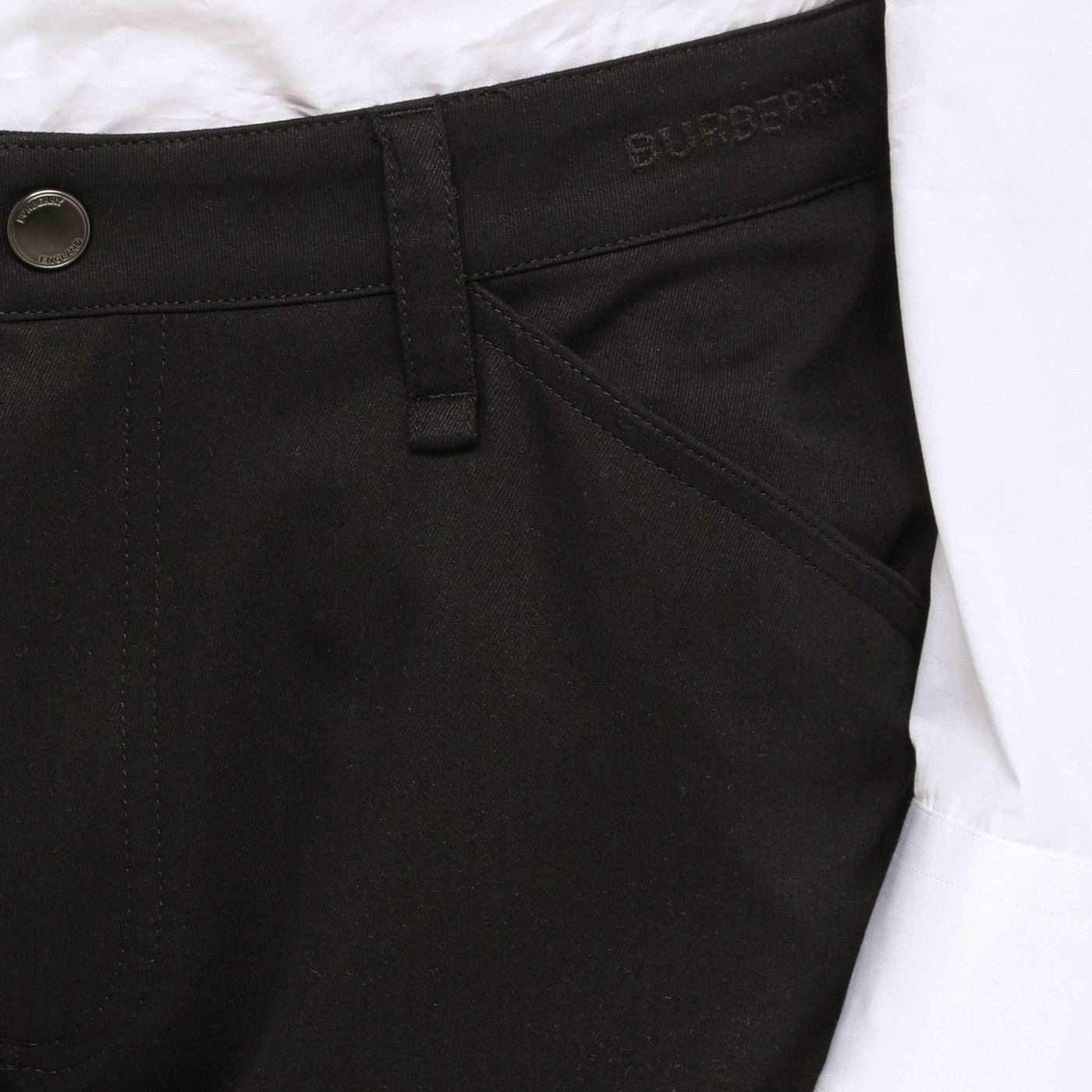 Pantalones de carga de algodón negro de Burberry, con varios bolsillos delanteros y traseros, bucles del cinturón en la cintura y la parte inferior de las piernas ajustables con botones.