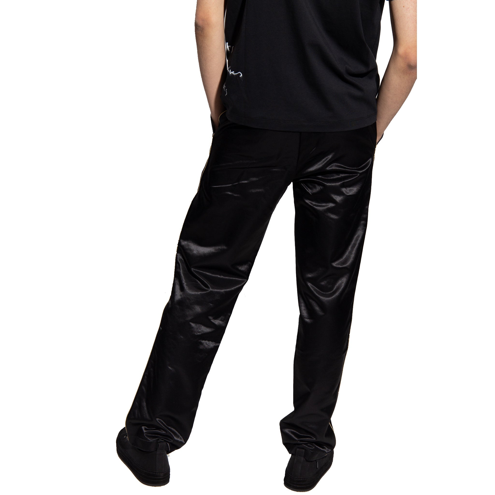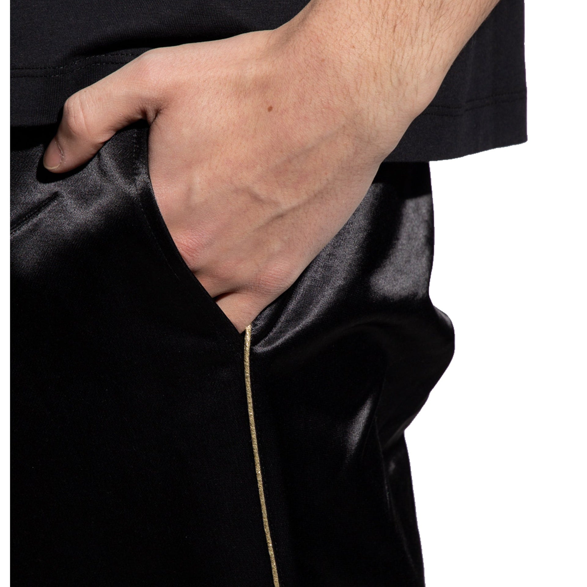 - Composición: 70% Algodón, 30% Rayón - Cordón en la cintura - Tres bolsillos - Inserciones laterales en tono dorado - Parche de goma con logo - Lavado a máquina (delicado) - Hecho en Italia -
