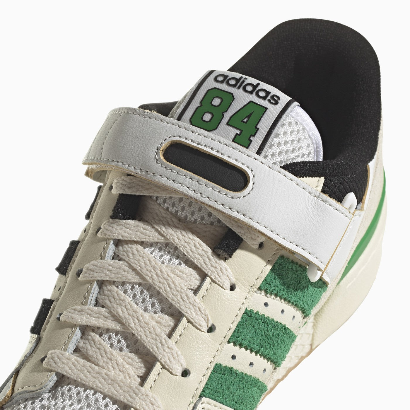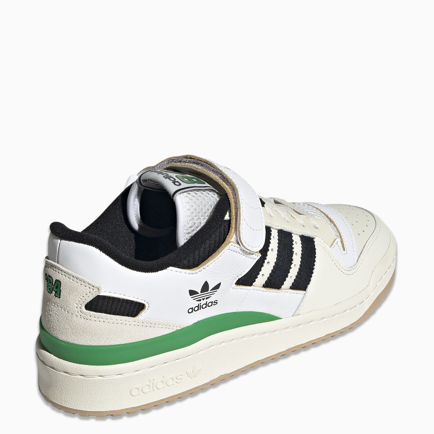 Entrenador bajo de adidas Originals con una parte superior de cuero blanco, un dedo del pie perforado redondeado, una fijación de cordones y velcro y una suela de goma. Detalles contrastantes del lado y la lengua acolchada de marca.
