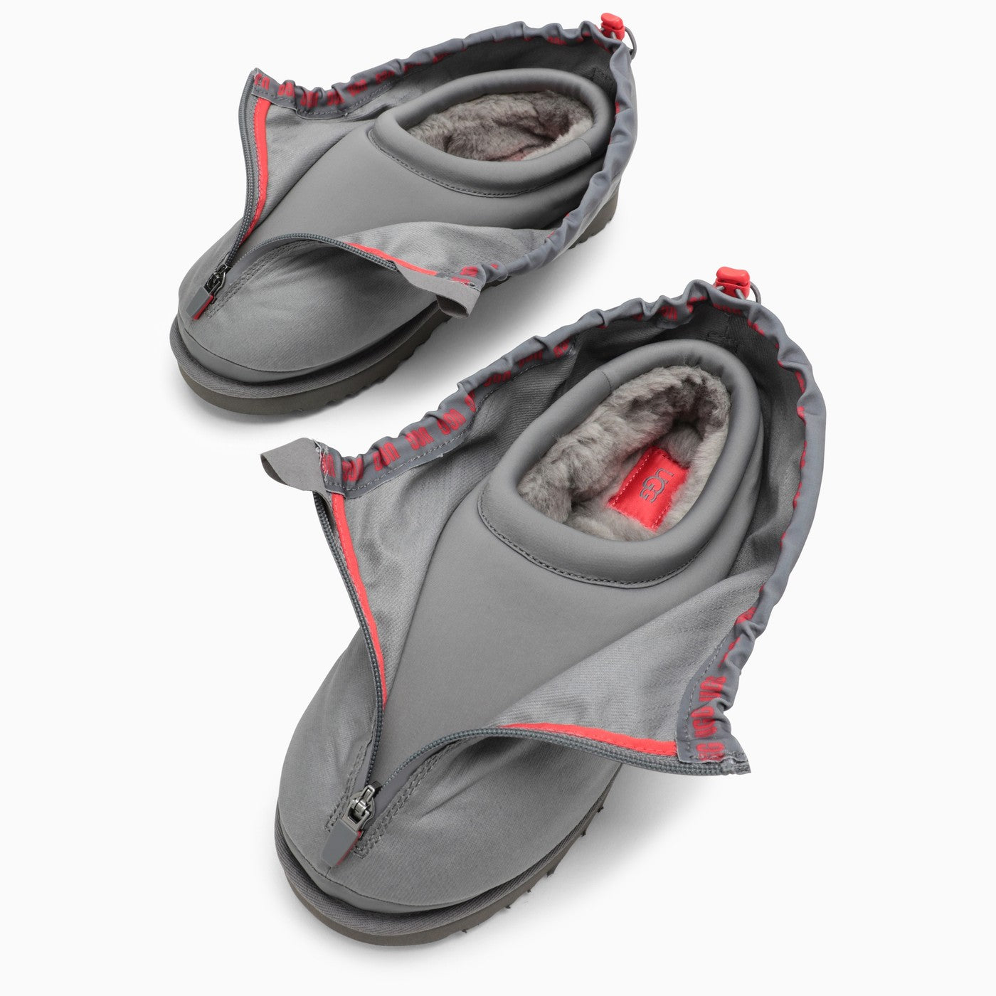 La tela gris se desliza de Ugg, con una parte superior de tela recubierta de PU, encaje elástico y olivette, cremallera en la parte superior, uggplush? ¿Elevación y suela de azúcar de Eva? único.