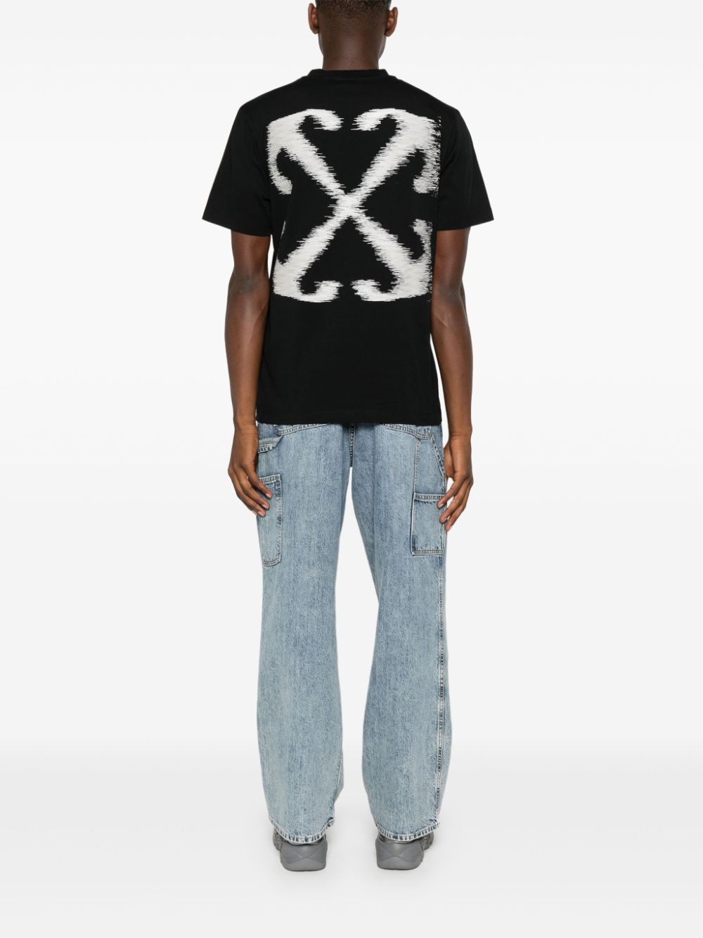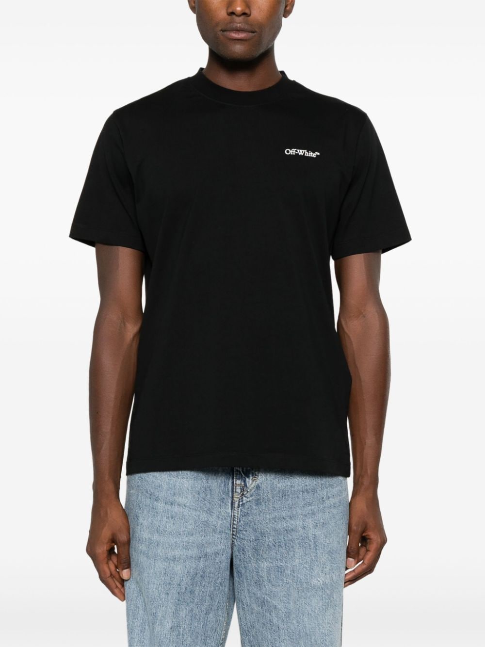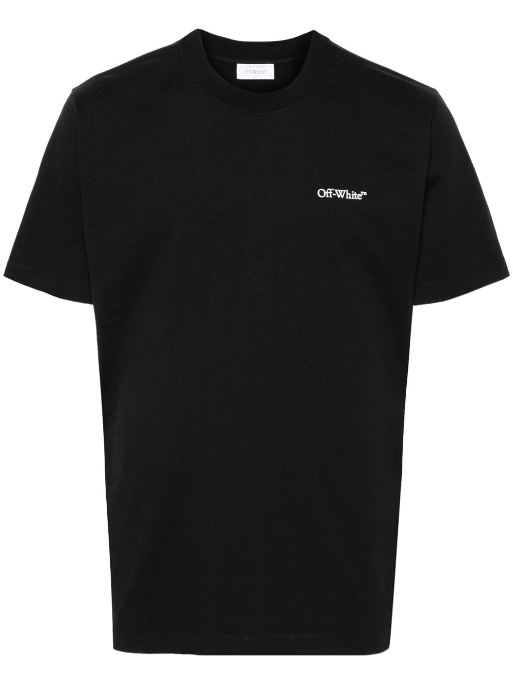 black cotton jersey texture crew neck short sleeves rubberised logo detail signature Windy Arrows motif at the back straight hem