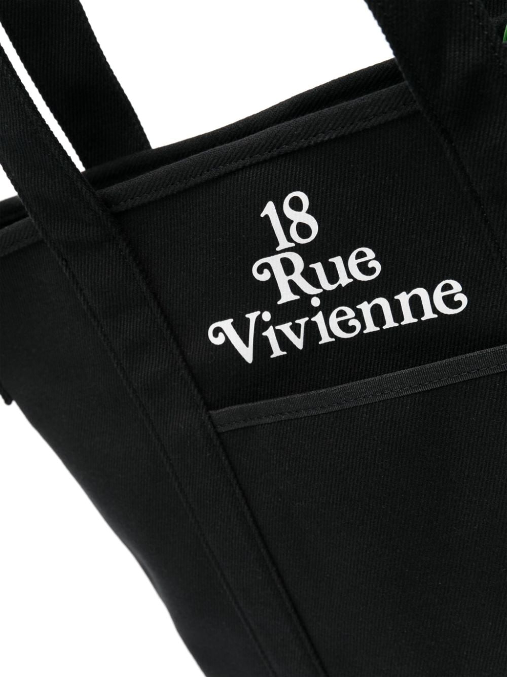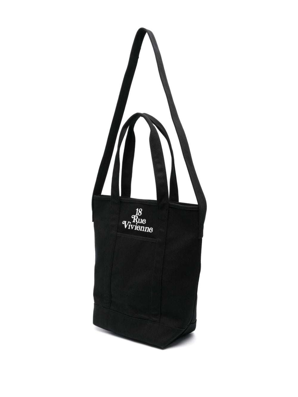 lienzo de algodón negro dos manijas superiores estampado de logotipo de una sola correa para el hombro al frente