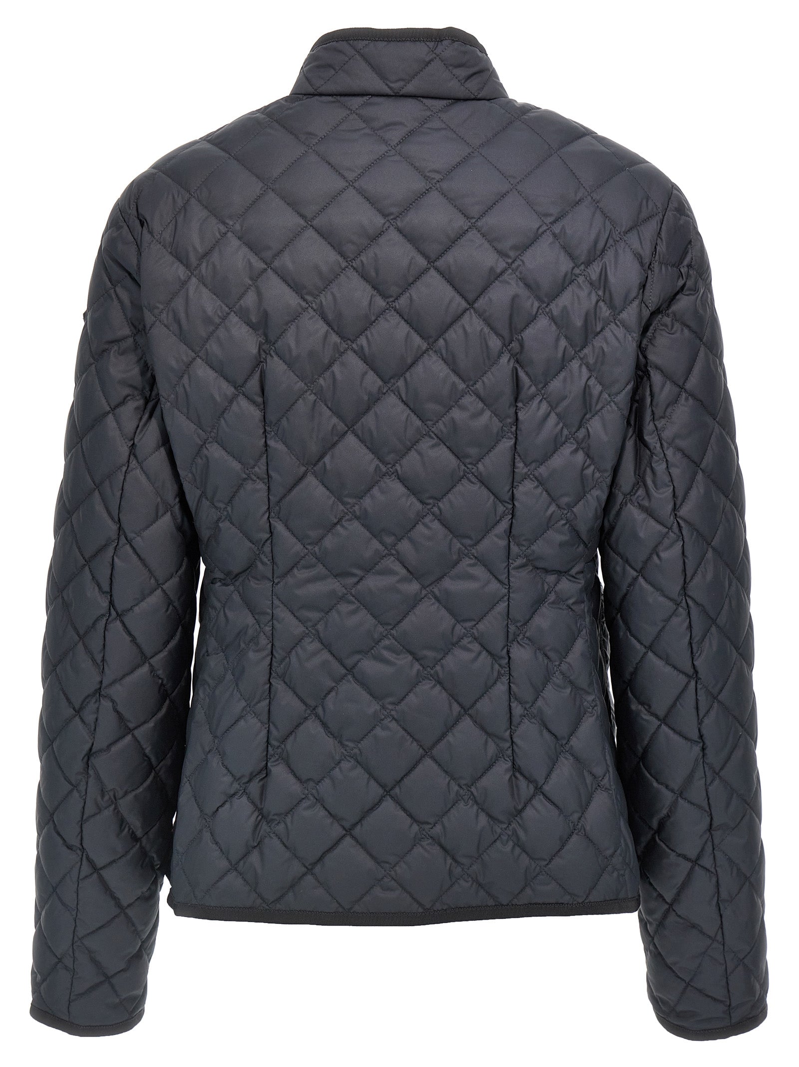 Epin 'Matelassé Chaqueta de poliéster acolchada con acabado mate ligeramente acolchado, tubería de grosgrafías de tono sobre tono, cuello alto, cierre de botones a presión, bolsillos, mangas largas con parche de logotipo de cuero de tono sobre tonos. Sostenible: producto hecho de materiales reciclados.