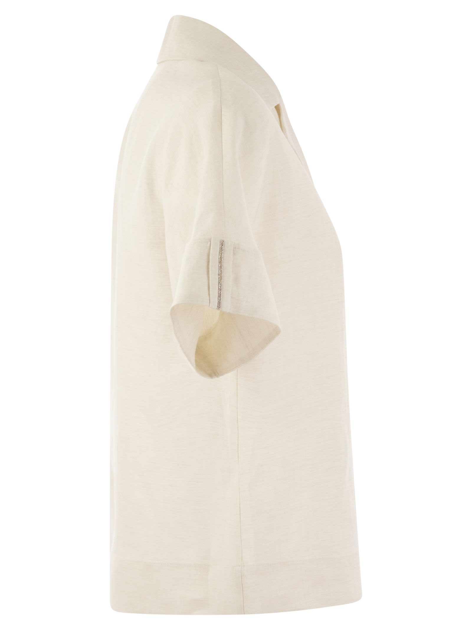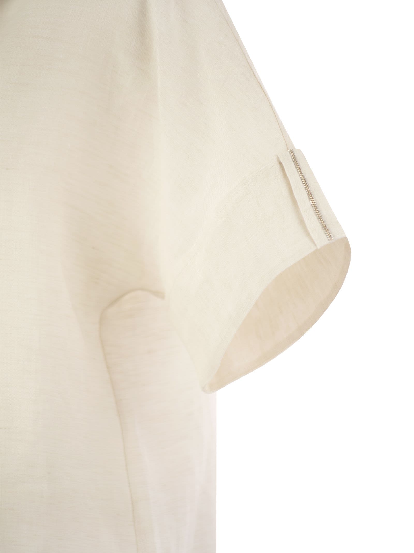 Una camisa diseñada en perfecta armonía con los pantalones de configuración, it Expresa la naturaleza fresca y relajada de la ropa teñida de hilos. El clásico escote de la solapa, las mangas cortas de Kimono con solapas y rana, enriquecidas con una delicada puntada de luz, dan un toque de elegancia refinada. El ajuste suelto se envuelve ligeramente, creando una configuración que transmite una atmósfera de comodidad y estilo auténtico. Perfecto para aquellos que buscan un look que combina frescura y sofisticación. - Camisa con escote clásico de solapa - mangas de kimono cortas con solapas y fijación de ranas - Detalles de puntadas de luz en el sujetador de rana - ID de diseñador de ajuste suelto: S06251 02600 902