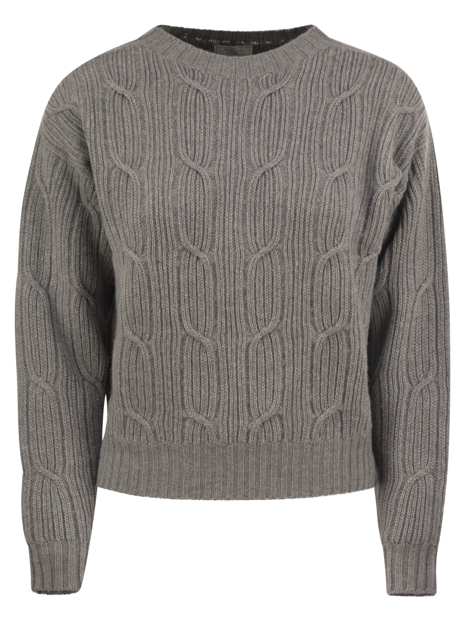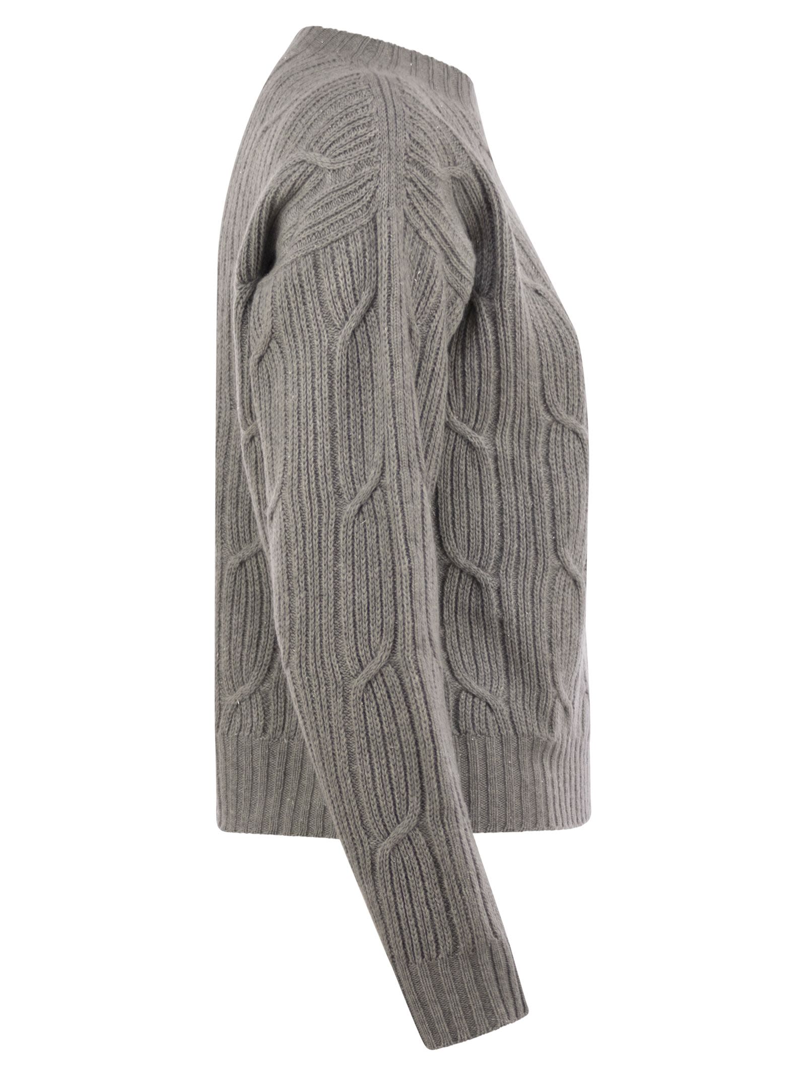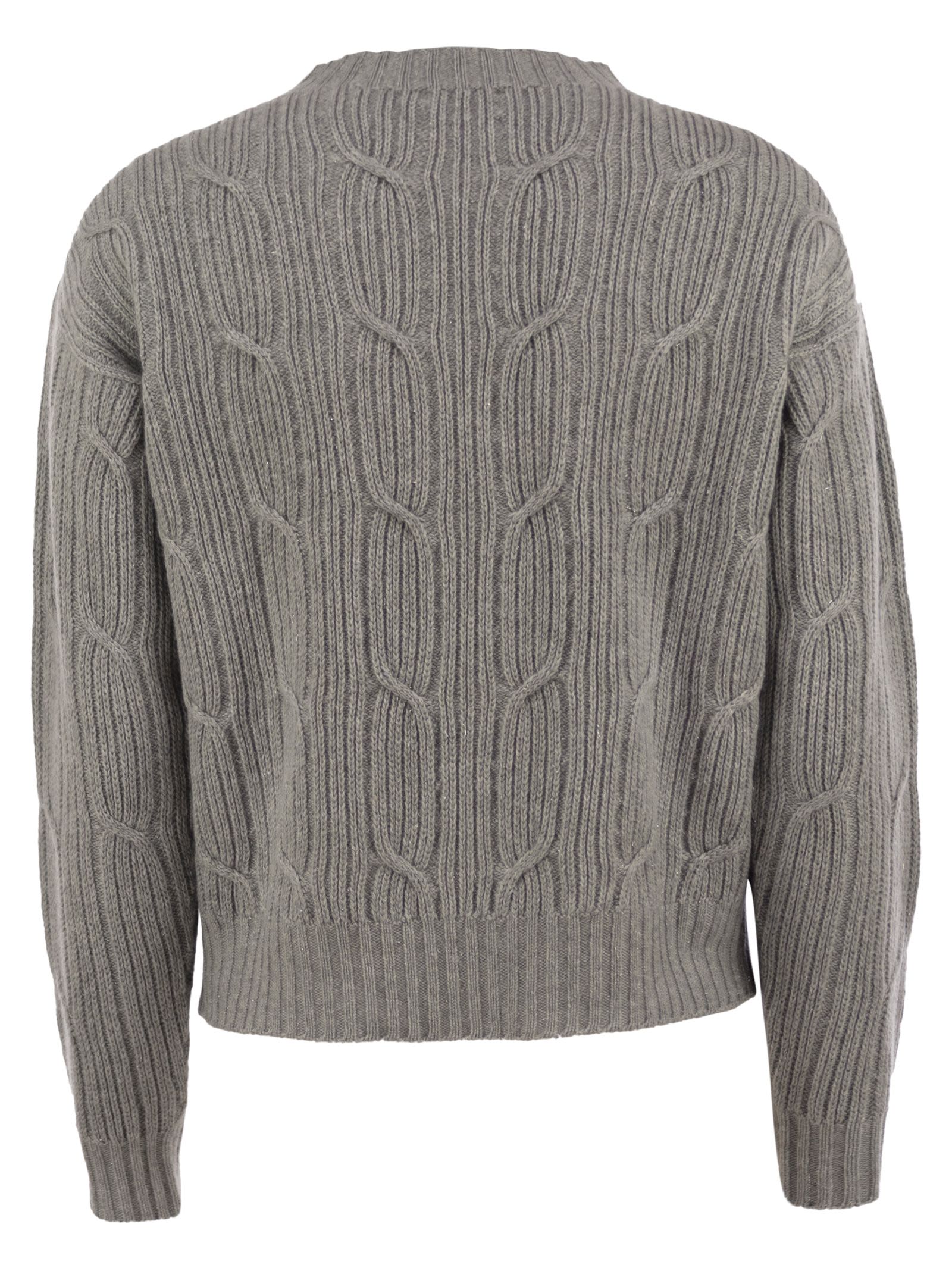 Cable knit sweater in wool and cashmere blend, crew neck with ribbed sleeves. - Cashmere blend sweater - Cable knit and ribbed knitting - Crew neck - Long sleeves with dropped lap - Ribbed collar, bottom and cuff trims - Regular fit DESIGNER ID: S99600F0709095 871