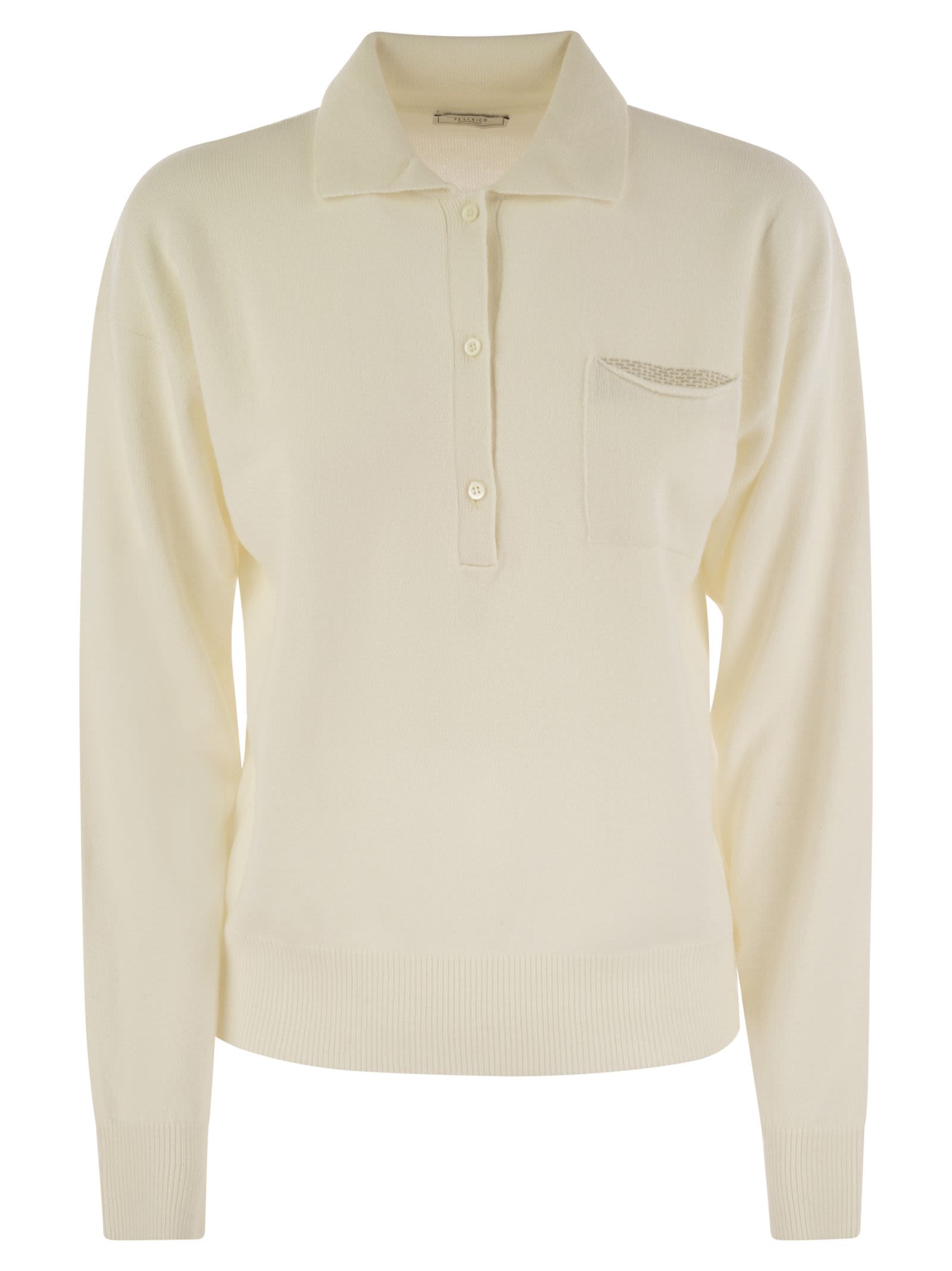 La elegancia atemporal de la lana virgen, la seda y el tejido tricot de cachemira se caracteriza por un collar de polo refinado. Un bolsillo de parche en el cofre, adornado con un detalle de Punto Luce, agrega un toque brillante al diseño. El ajuste regular le da una nota elegante. - Polo Neck - Mangas largas - Patch Pocket On Cofre con Detalle de Spotlight - Ajuste regular - ID de diseñador de cierre de tres botones: A99530F12B9018 B03