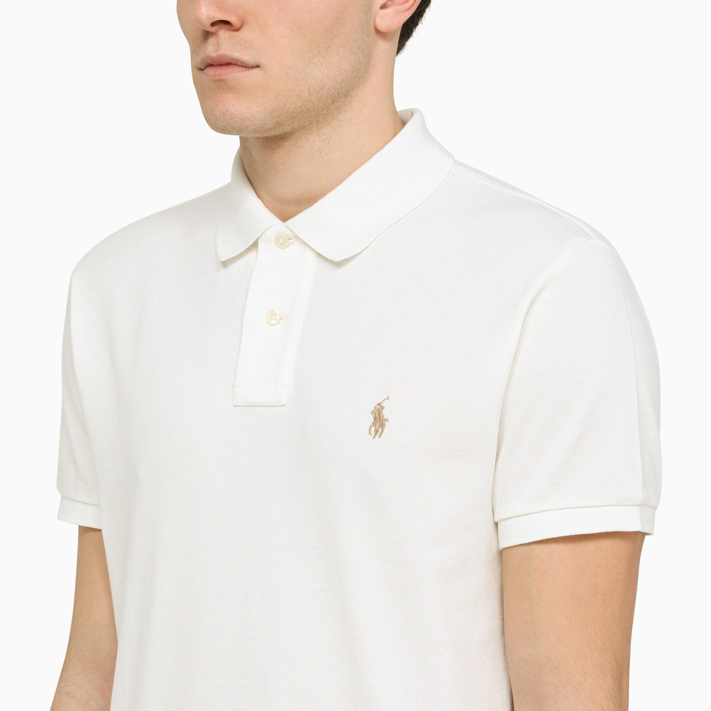 Polo de manga corta de Polo Ralph Lauren en piqué de algodón blanco, con un dobladillo asimétrico con hendiduras laterales, botones en collar y logotipo bordado en el cofre.