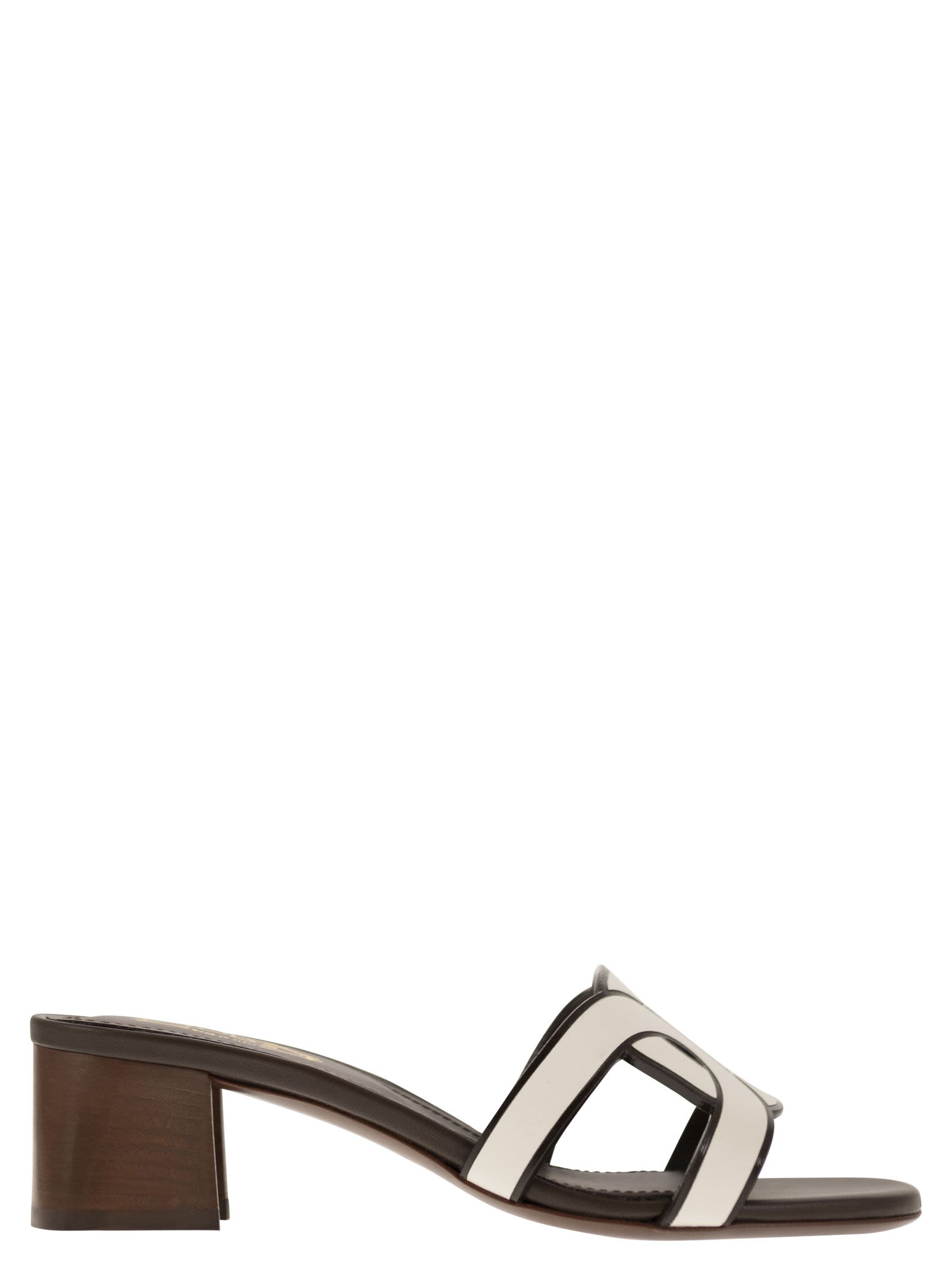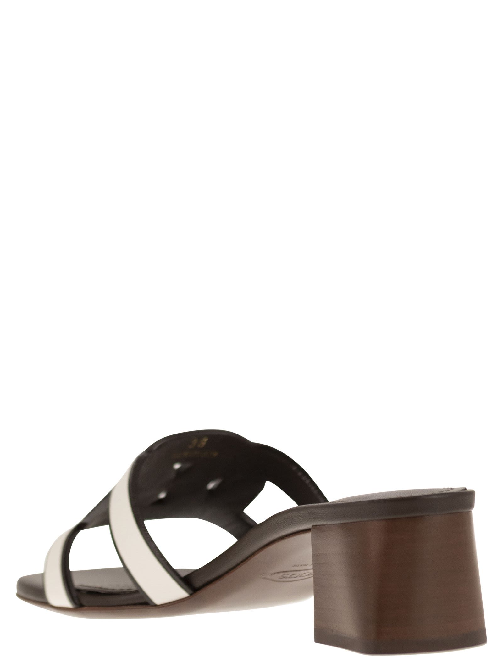 Sandalia de tacón de cuero de Tod