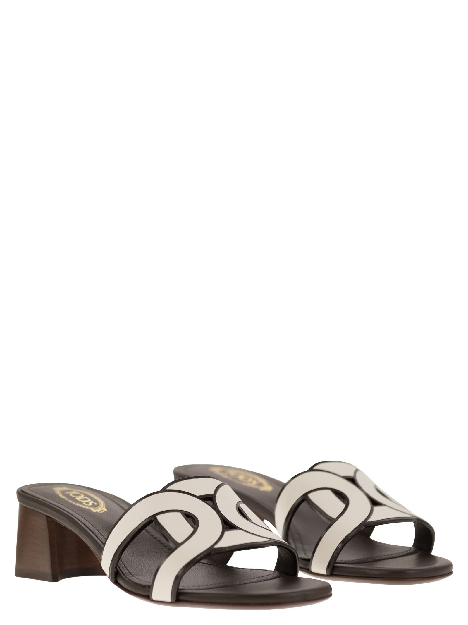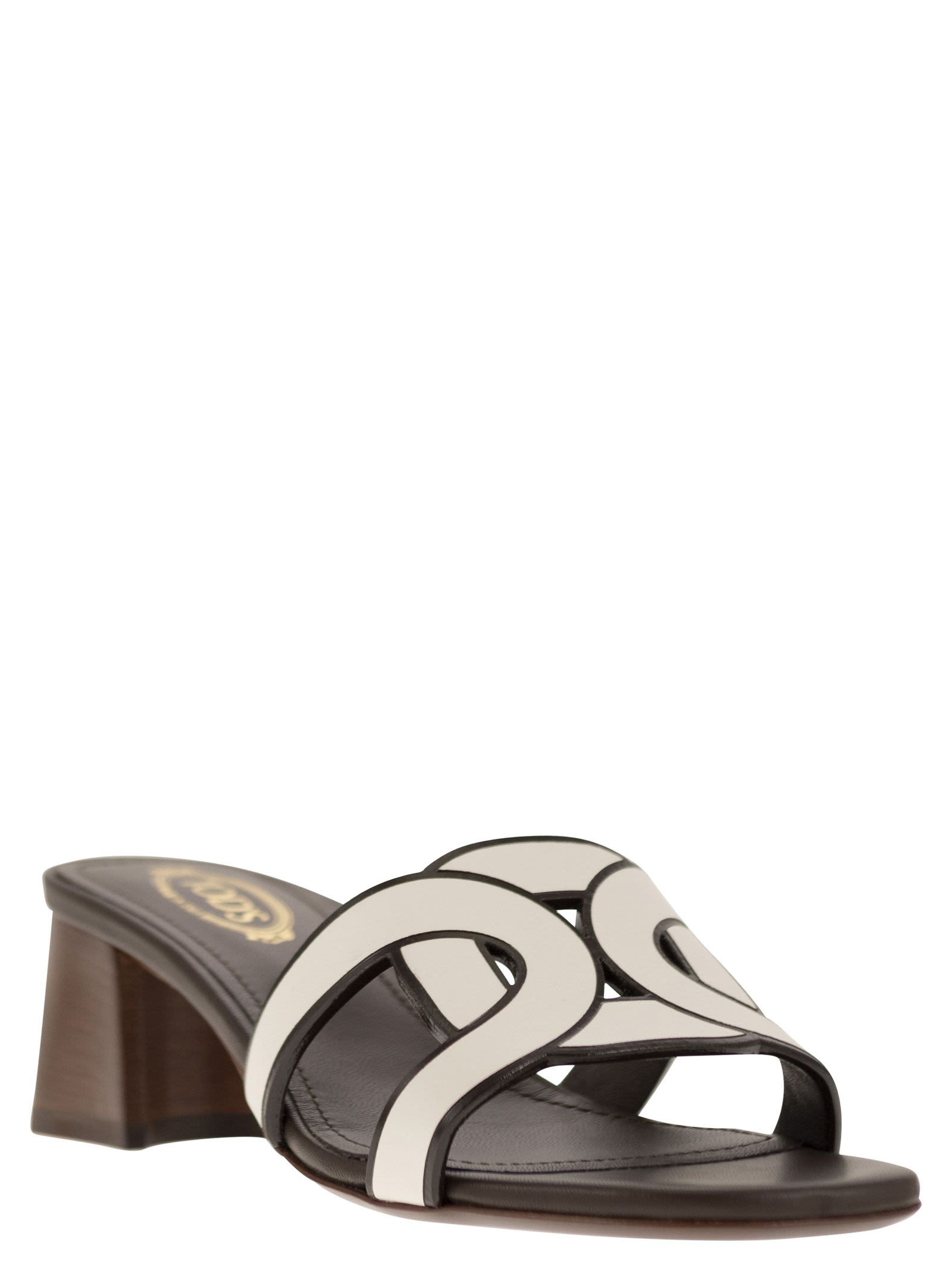 Sandalia de cuero suave con una correa en forma, reproduciendo el accesorio icónico de la cadena. Con un tacón amplio y cómodo y una suela de cuero, es una parte del look de verano. - Hecho en Italia - Superior de cuero - plantilla de cuero - cuero y tacón de goma - suela de cuero - estuche con Tod 's ID de diseñador de logotipos: xxw04j0gu70midb001