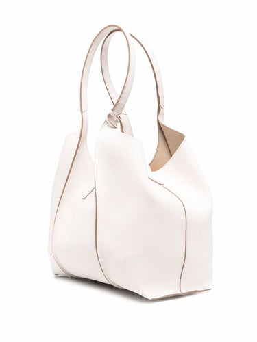 Bolsa de bolas de compras de cuero blanco de cuero de TOD 'S Con dos manijas superiores largas, compartimento principal, bolsa extraíble, hardware de tonos dorados y diseño con paneles.