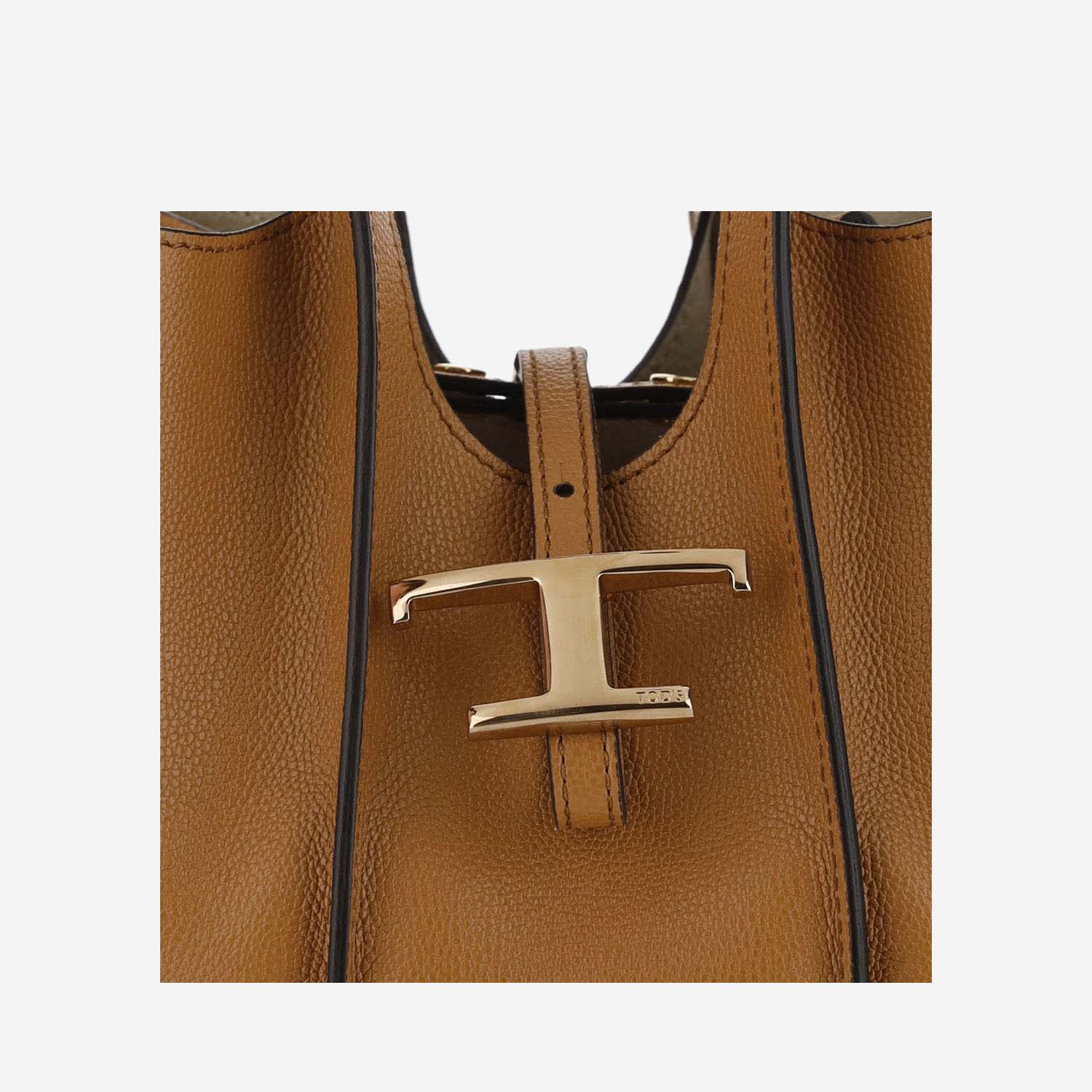 Cierre superior con correa de color dorado y hebilla T