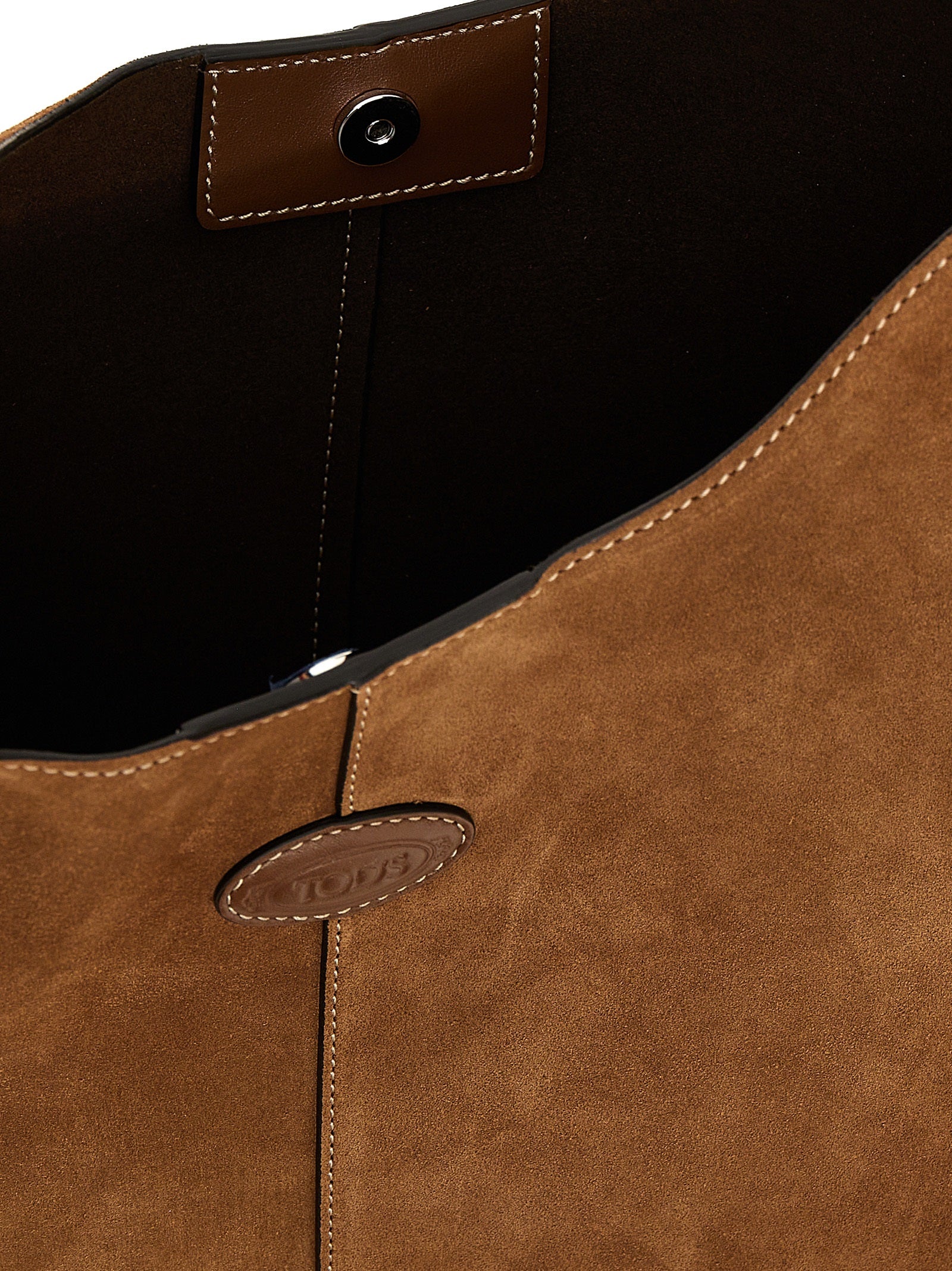 'Tod's DI Bag Hobo 'Bolso de hombro en gamuza y cuero liso, parche del logotipo delantero, manija ajustable, cierre de botones magnéticos, bolsa de embrague de cuero extraíble con cremallera.