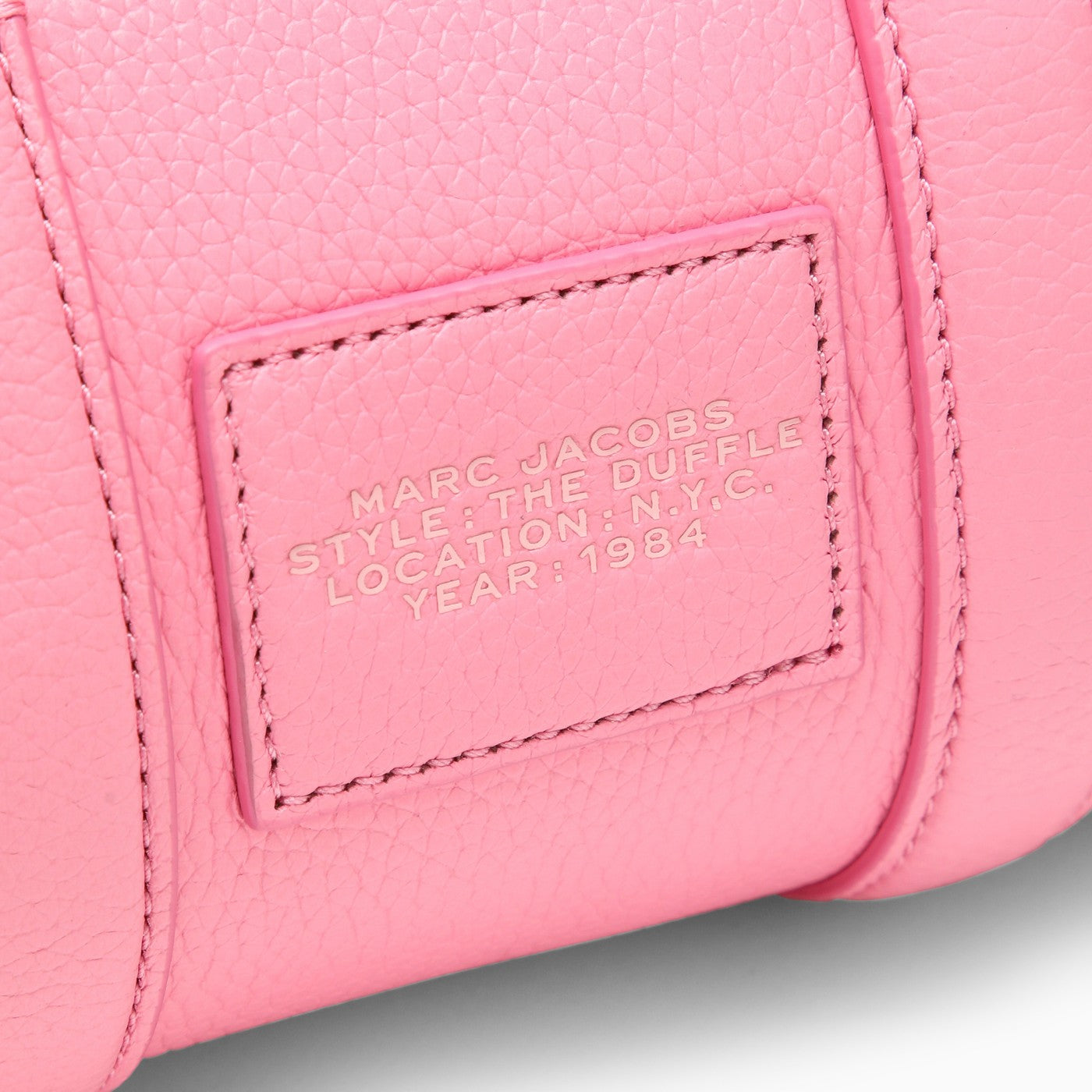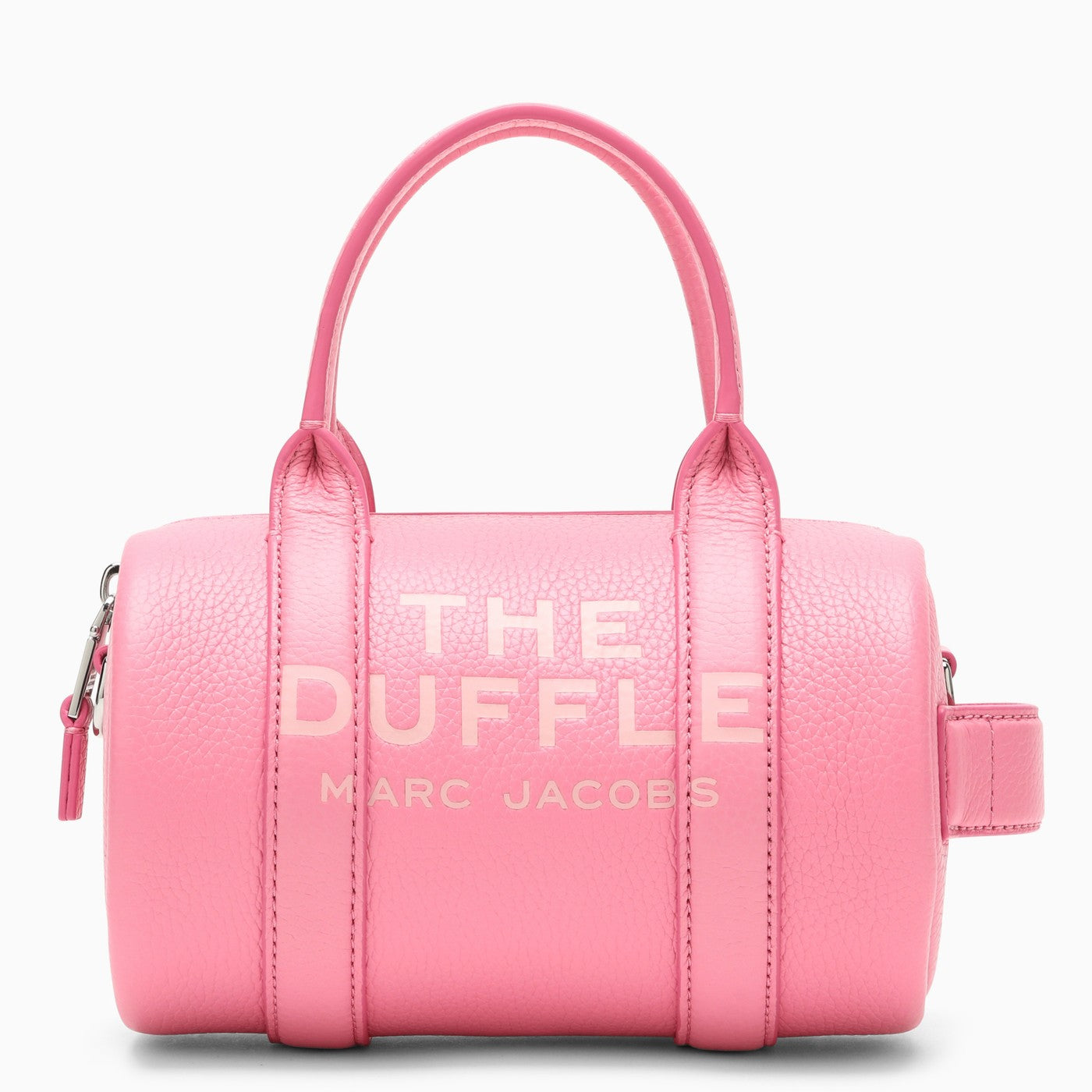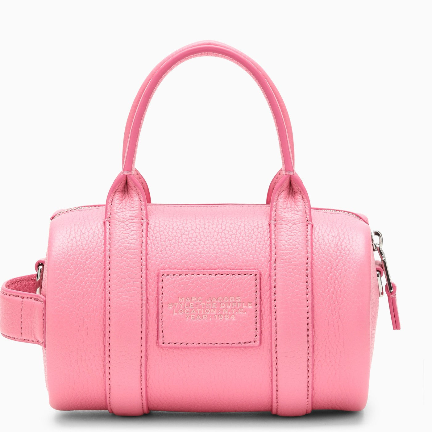Mini bolso de Marc Jacobs en cuero rosa pétalo con una correa de hombro extraíble y ajustable, dos manijas de cuero, un cierre de cremallera y un logotipo en relieve en la parte delantera.