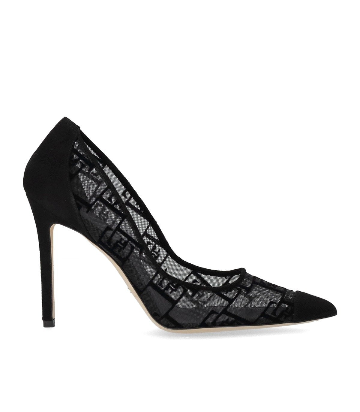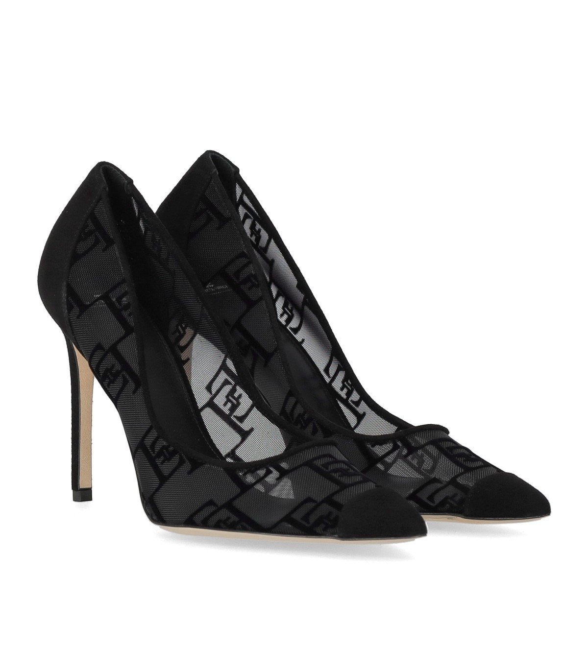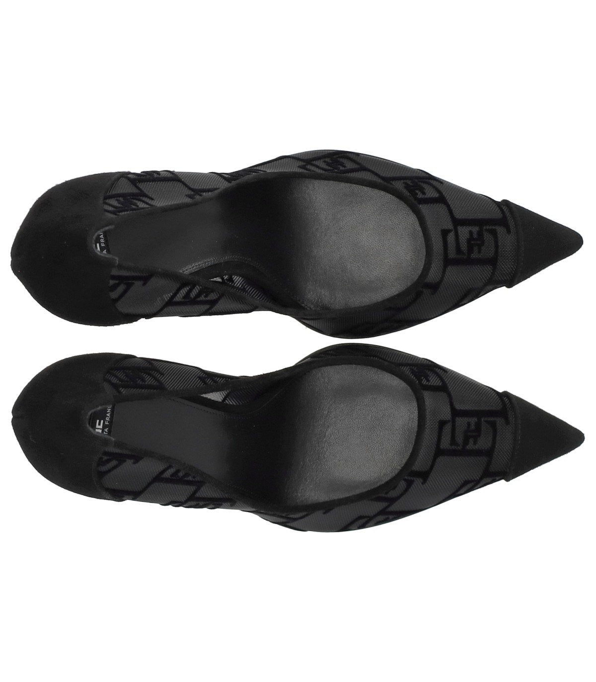 Elisabetta franchi bomba, hecha de cuero de gamuza y tul en tonos negros, decorado con un motivo de monograma. Toe puntiagudo, plantilla de cuero suave y suela de cuero. Altura del talón 10.5 cm. Composición: 100% de cuero.