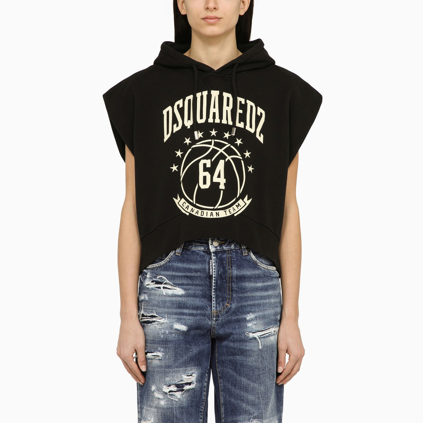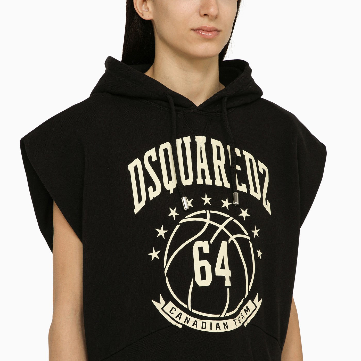 Sudadera sin mangas de algodón negro de DSquared2 con una campana de cordón ajustable, logotipo frontal contrastante, dobladillo acanalado y ajuste relajado.