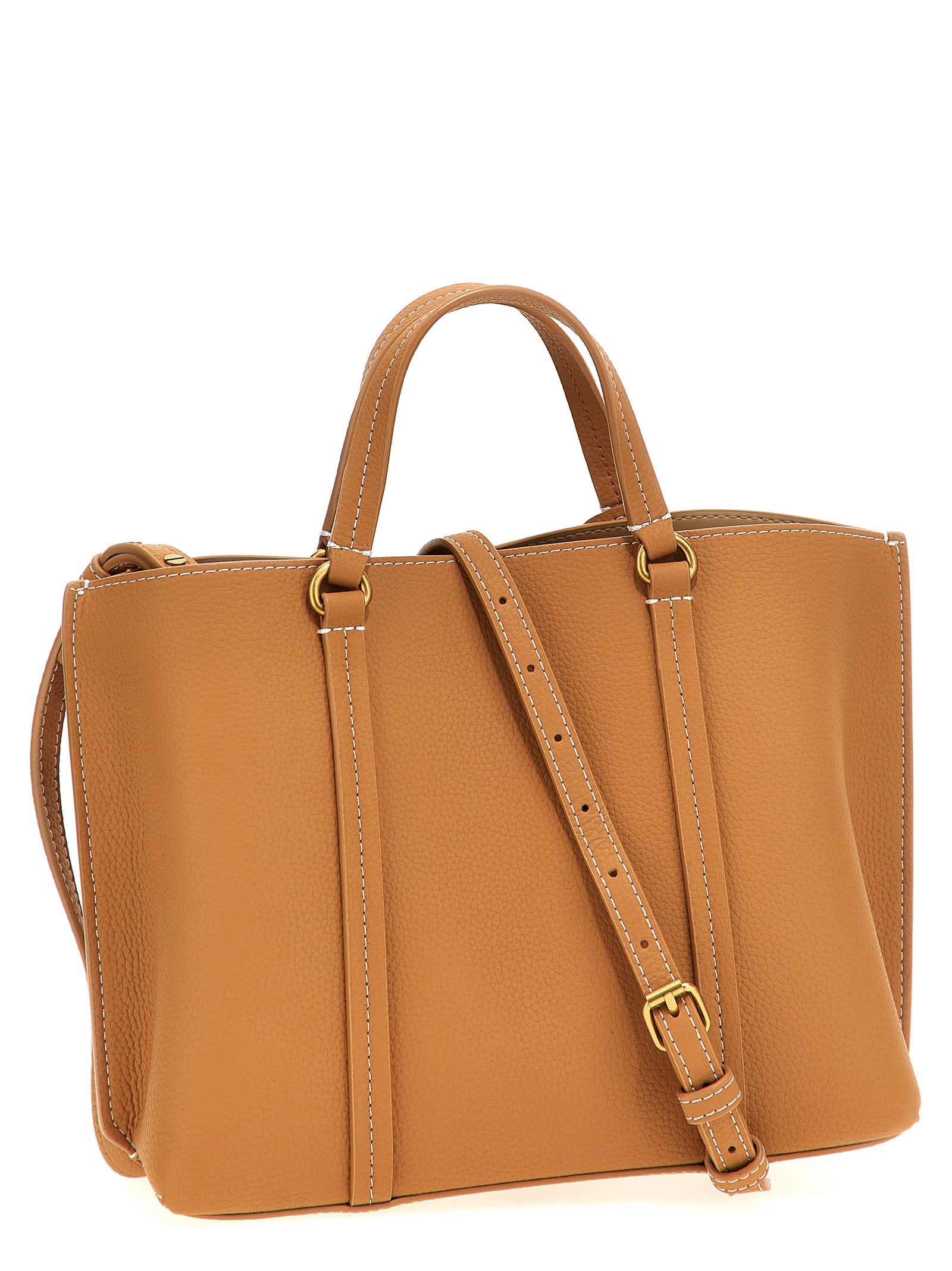 Bolsa de compras 'Carrie' clásica en cuero batido emparejado, logotipo de metal delantero, mango doble fijo, bolsillo interior con cierre de cremallera, correa de hombro ajustable y extraíble.