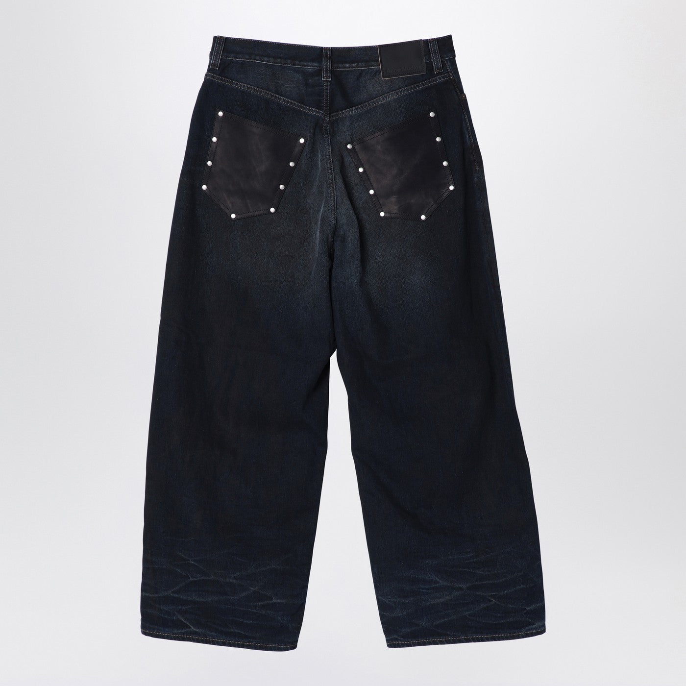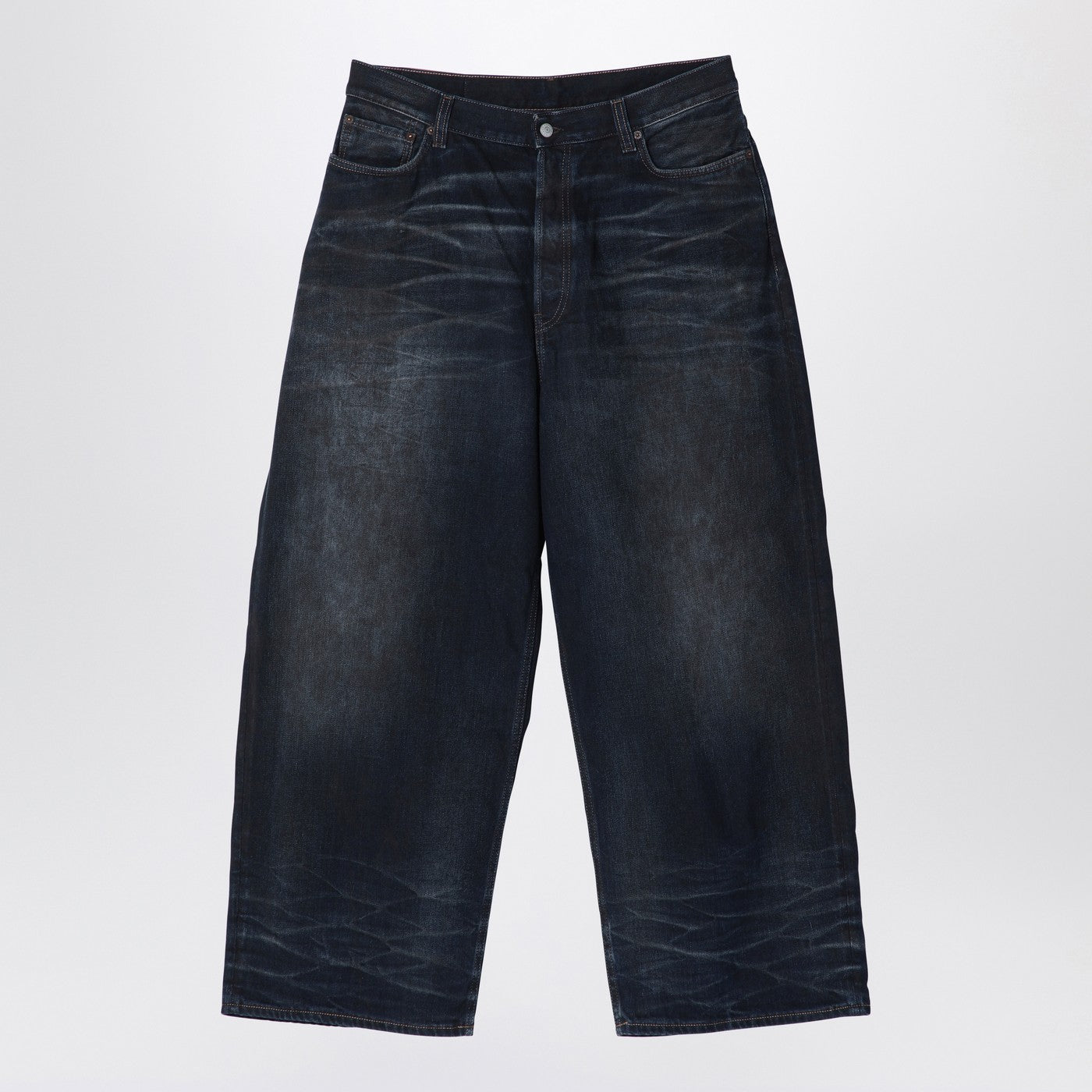 Jeans lavados de mezclilla de algodón azul oscuro de Acne Studios con una cremallera frontal y un abrochación de botones, bucles de cinturón en la cintura, tres bolsillos delanteros, dos bolsillos de parche de cuero en la parte posterior, un parche de logotipo trasero y un ajuste súper suelto.