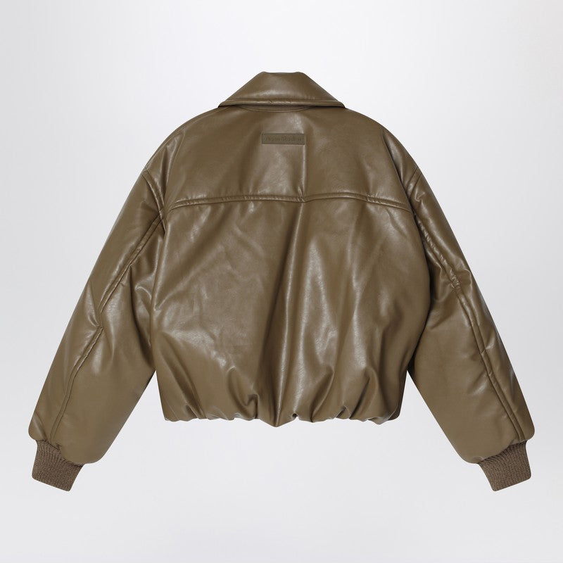 Chaqueta de bombardero acolchada de cuero con falso verde color caqui de Acne Studios con una cremallera delantera, mangas largas con puños de punto acanalado, un parche de logotipo trasero y dos bolsillos de ribete laterales.
