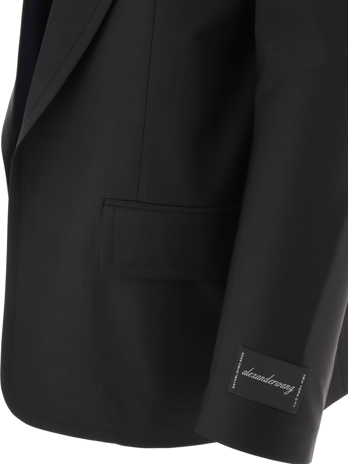 El blazer de gran tamaño de Alexander Wang con frente de solapa incorporado es una pieza de alta costura diseñada para la mujer moderna que quiere combinar elegancia y practicidad. Este blazer negro con solapas máximas y bolsillos terminados ofrece un toque sofisticado gracias al logotipo tejido en el brazalete izquierdo, recurriendo a la tradición de la marca. || - Fit de gran tamaño - solapas de pico - Apertura frontal - bolsillo de pecho de ribete - bolsillo de colgajo - Frente Poplin desmontable || Perfecto para combinar con pantalones de cigarrillos o faldas MIDI para un aspecto profesional. Agregue una camisa blanca para un toque clásico o una camiseta básica para un estilo más informal. Complete el look con zapatos de tacón de tacón y un bolso de hombro.