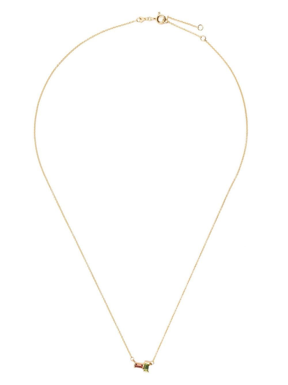 Collar con piedras fritas con Aliita con oro amarillo de 9 kt, colgante de piedras preciosas, fijación del anillo de primavera y ajuste ajustable.