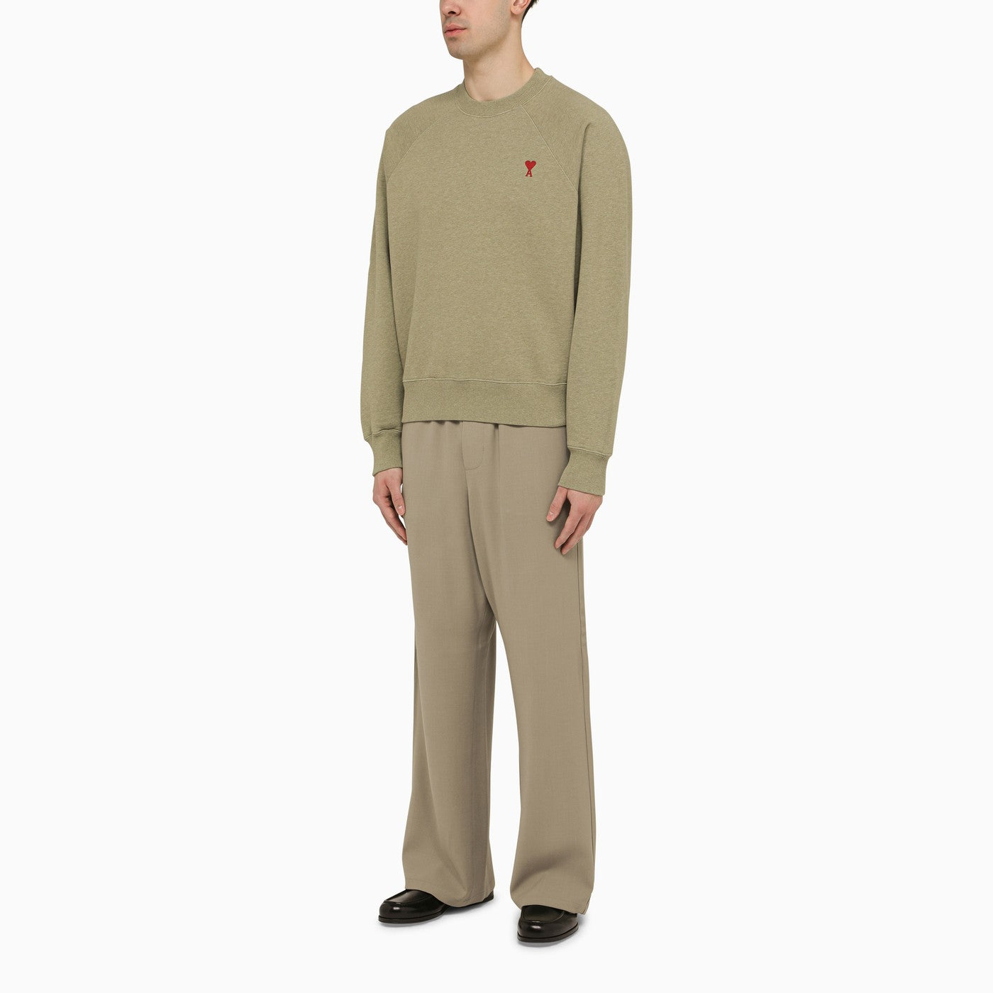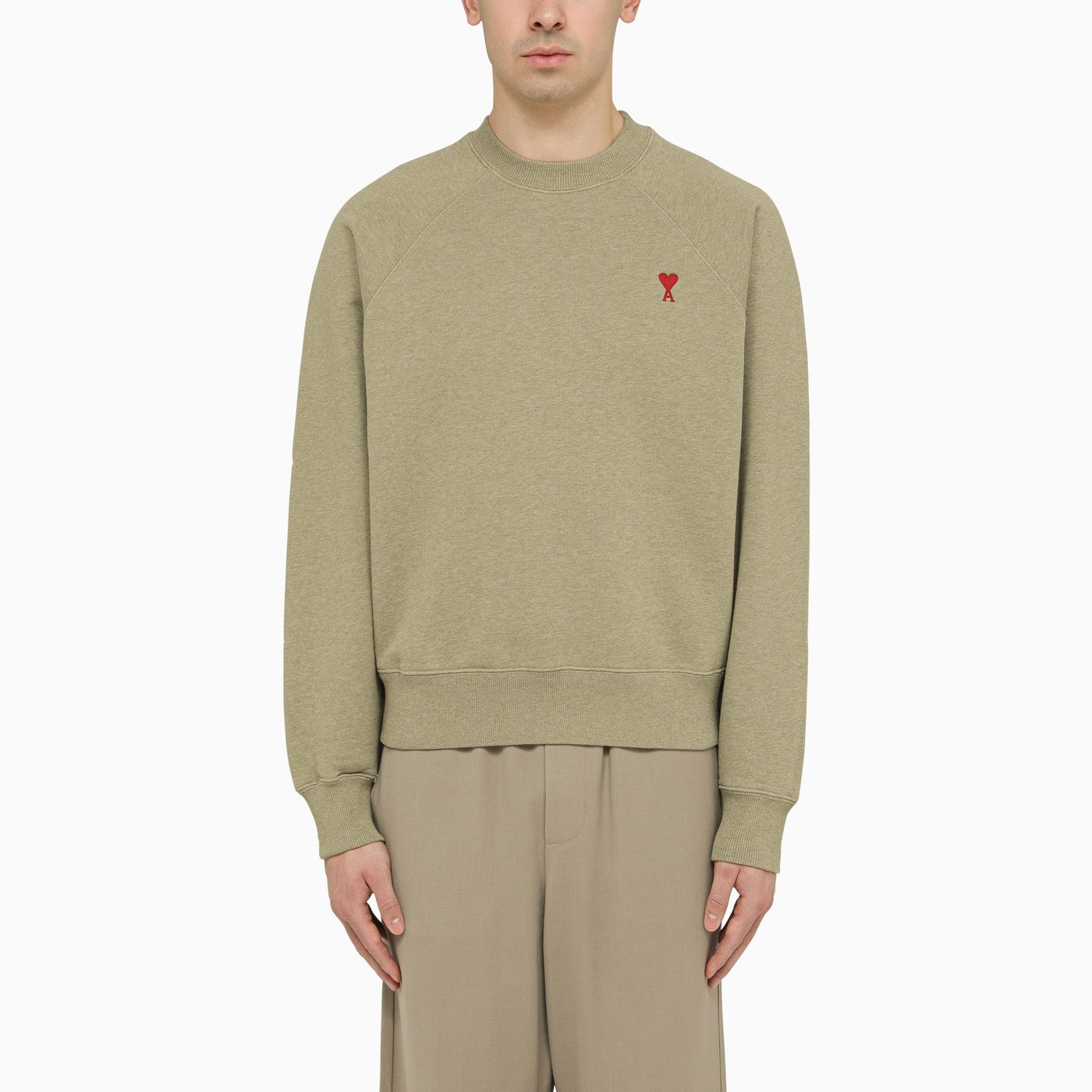 Sudadera con cuello de equipo de Ami París en Sage Green Organic Cotton Jersey, con mangas largas de raglán y bordados de ami de coeur en el cofre.
