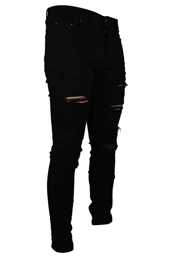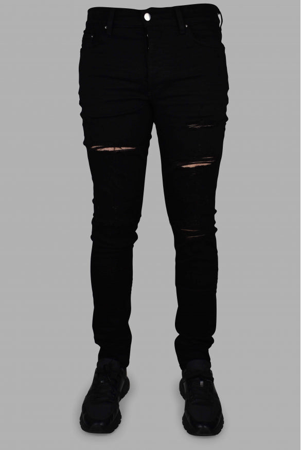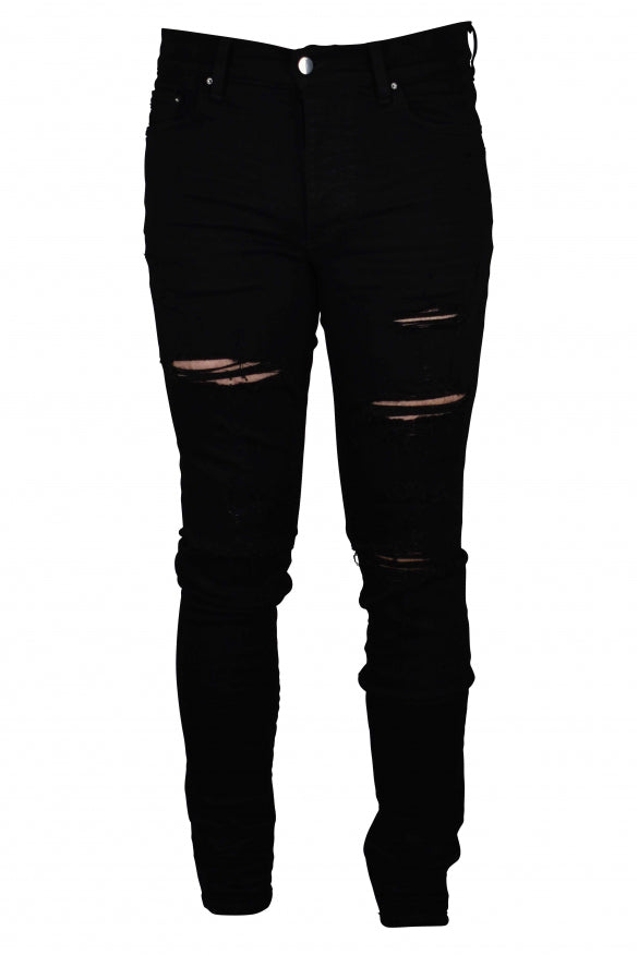 LA rock ’n’ roll meets luxury craft—distressed denim, leather, and meticulous detailing by Mike Amiri since 2013.