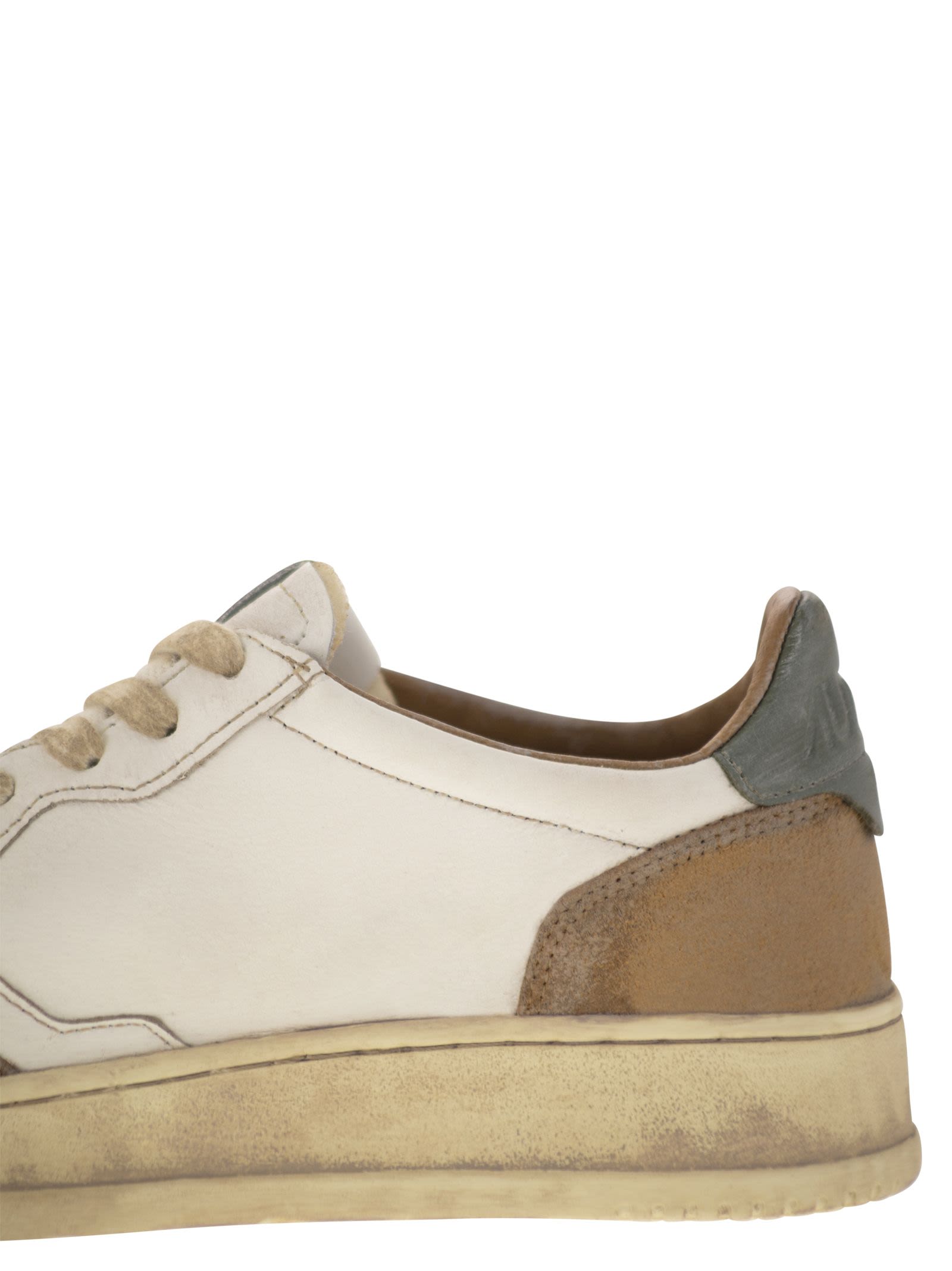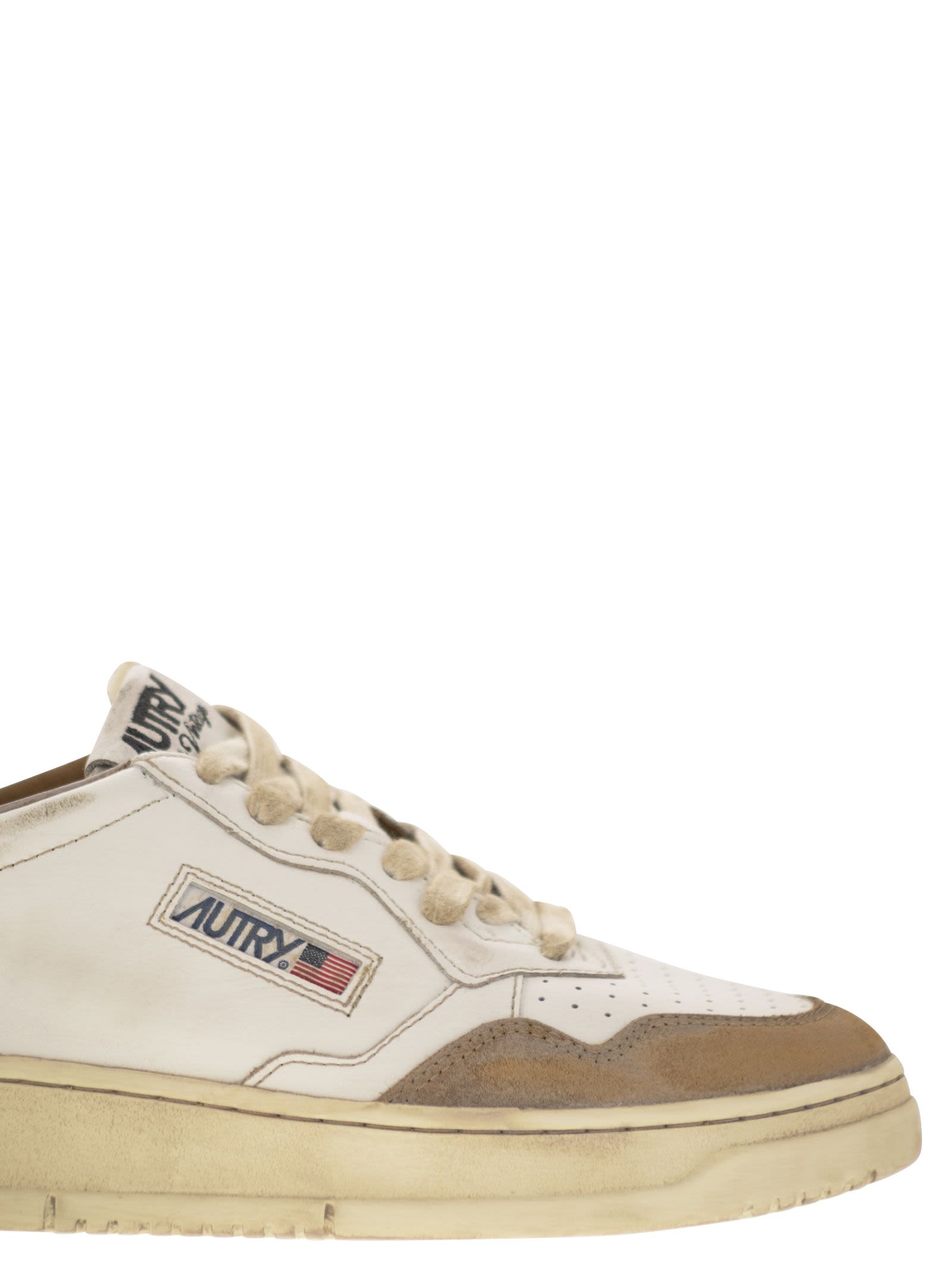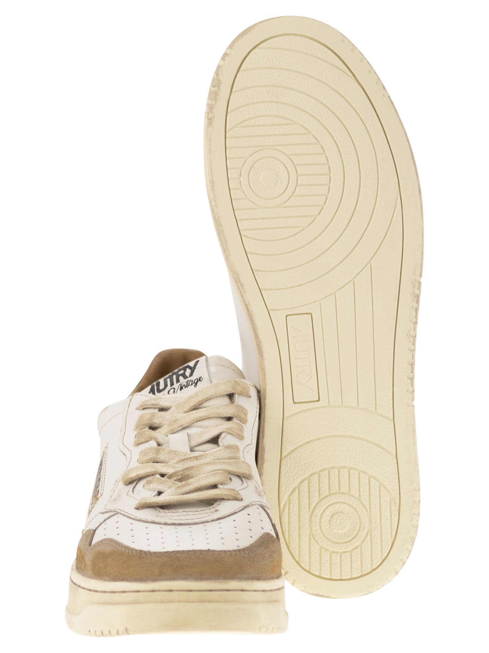 Con un diseño inspirado en los modelos de tenis de los años ochenta, Autry 's Entrenadores súper vintage revolucionar a los hombres clásicos 's Medalista con experimentación contemporánea. La artesanía especial crea efectos de quemaduras que agregan carácter a la parte superior, la suela de goma y el logotipo que parece estar desgarrado. - Superior de cuero - Toe con microholes - Lacios de algodón plano - etiqueta con bordado cosido en la lengua - collar acolchado - cuero porcino, terry y forro de nylon - plantilla de cuero elevado de 2 cm - suela de goma - diseño de la bolsa de tela personalizada: avlmls03