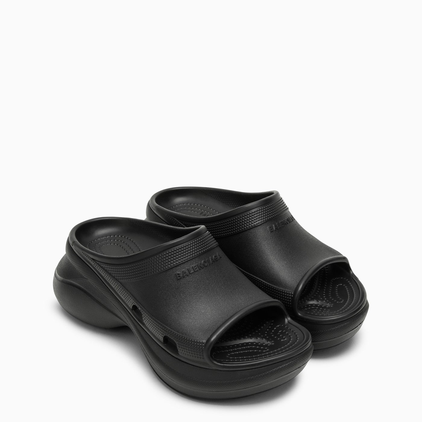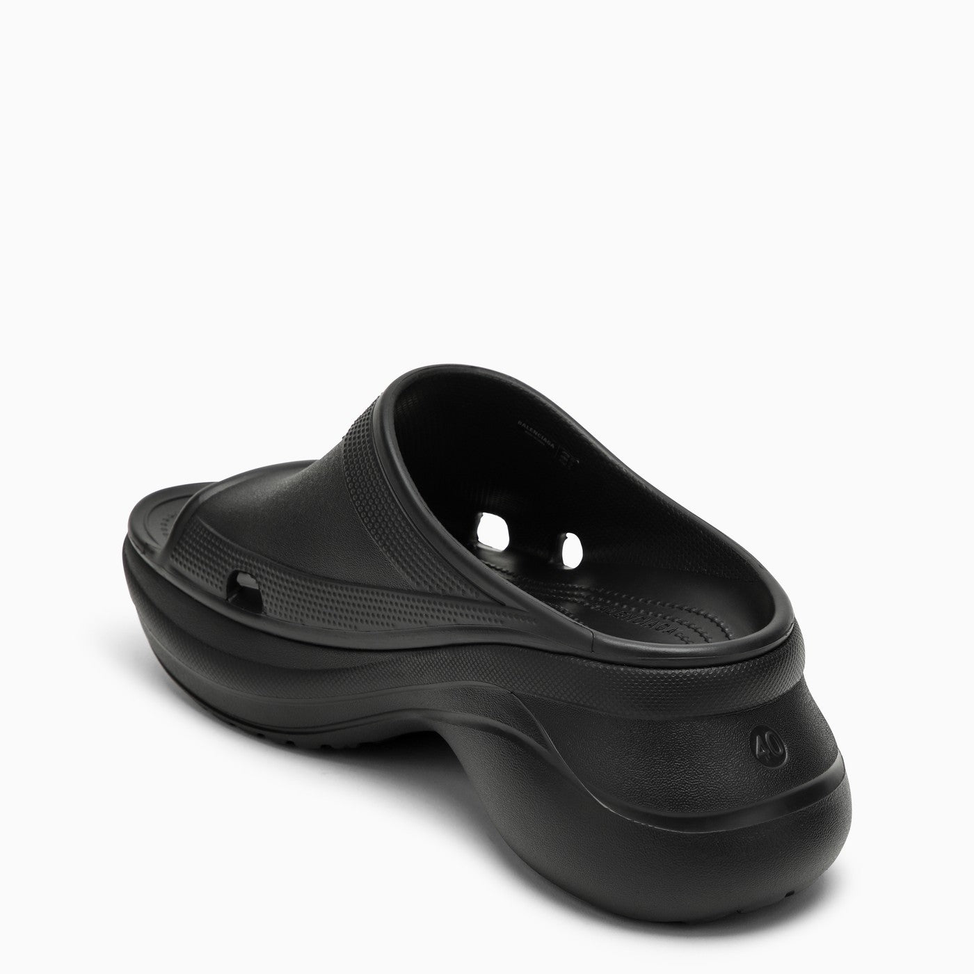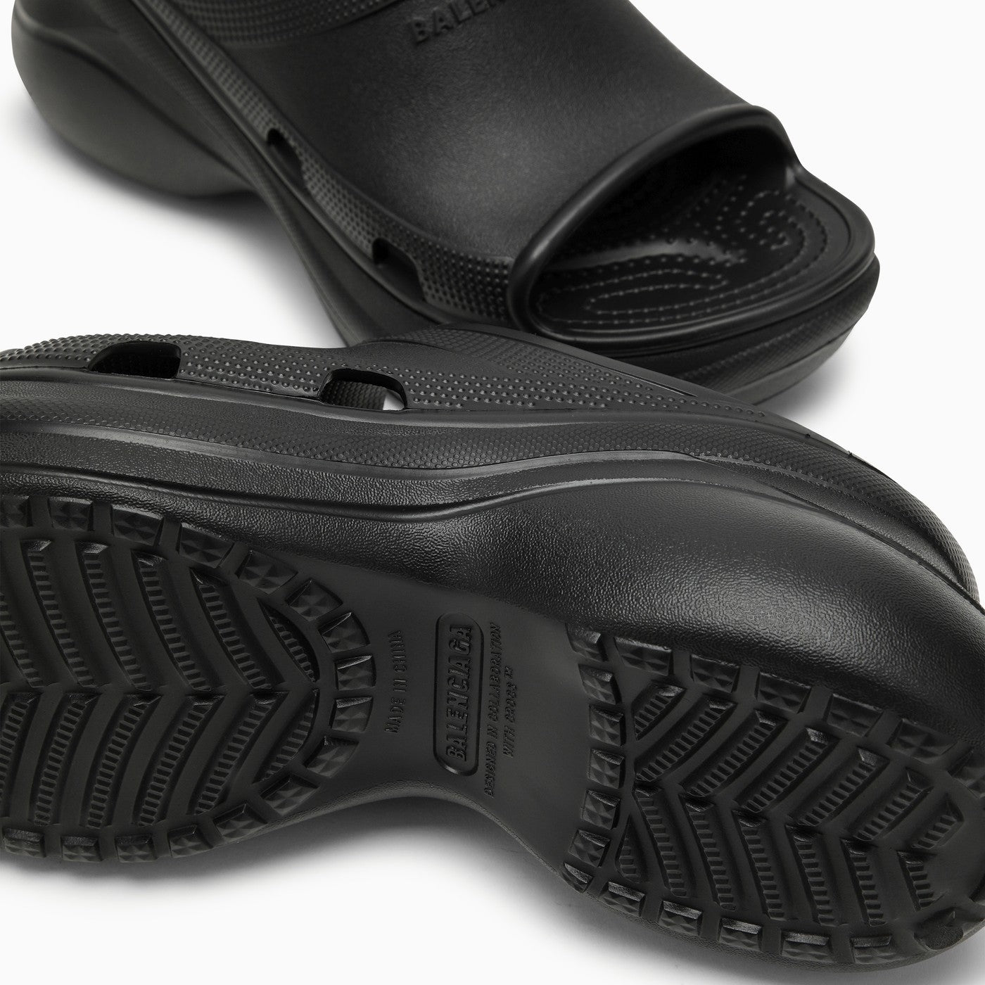 La baja sandalia hecha en colaboración con Crocs in Black PVC por Balenciaga, con una redonda redonda, letras frontales de tono sobre tono en relieve en la parte superior, tamaño en relieve en la parte posterior y una suela de goma.