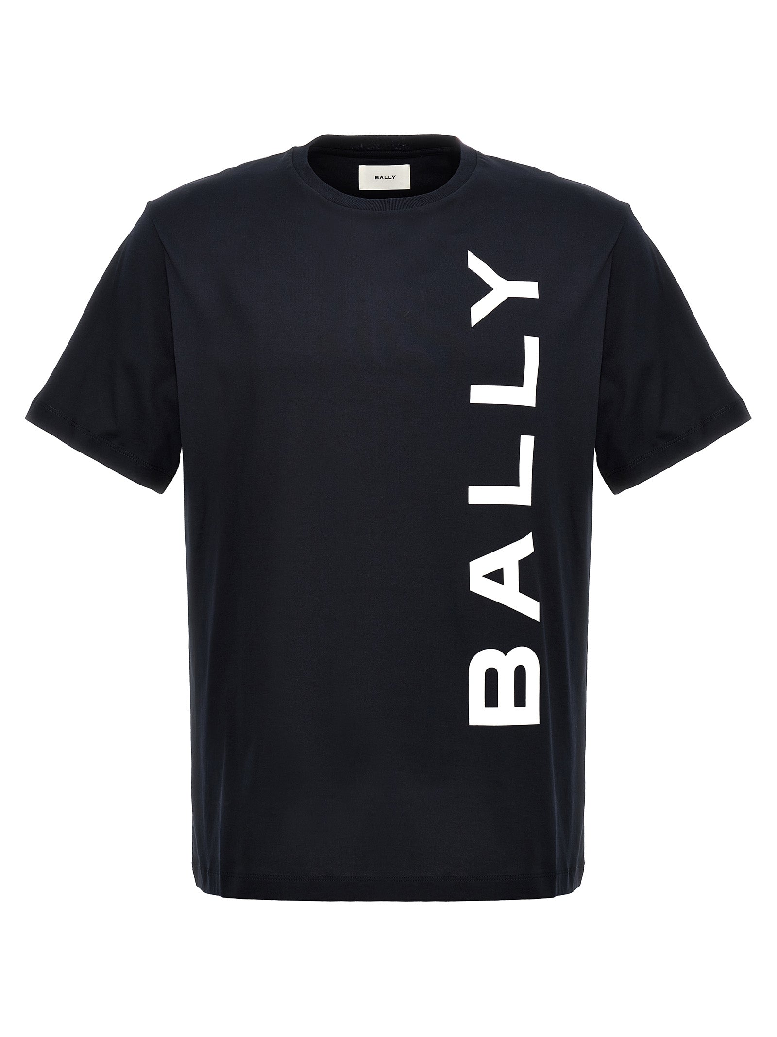 Camiseta de algodón con estampado del logotipo delantero, cuello de la tripulación, mangas cortas.