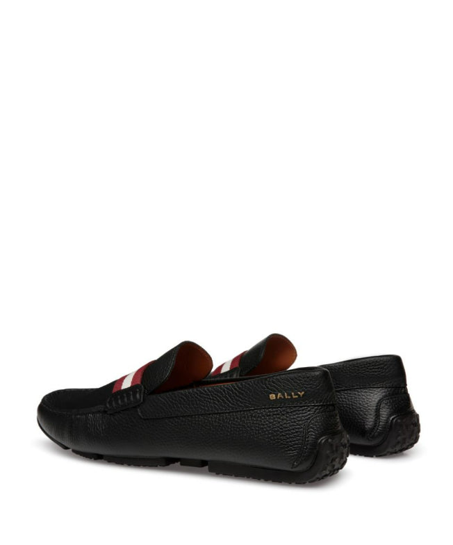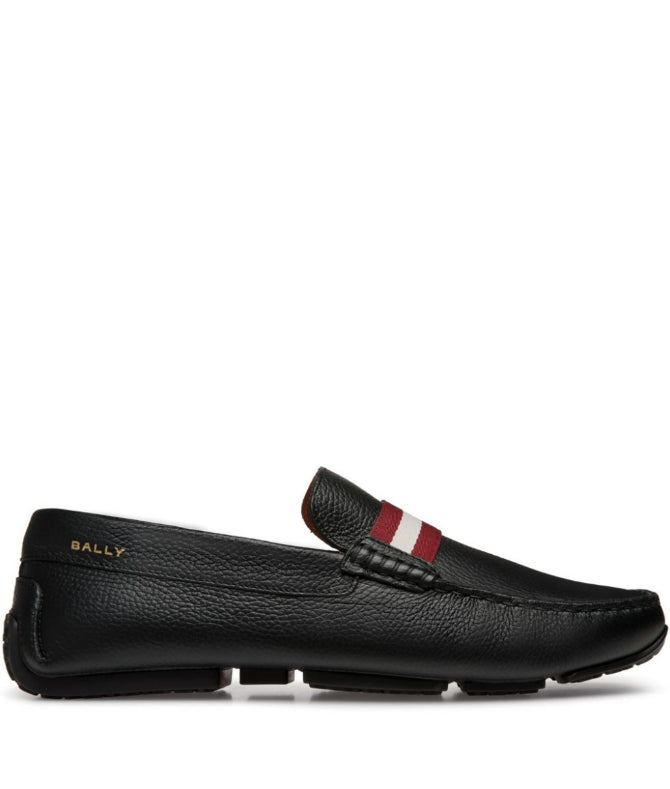 Leather loafers with striped details. Logo print on the side. Rubber sole.