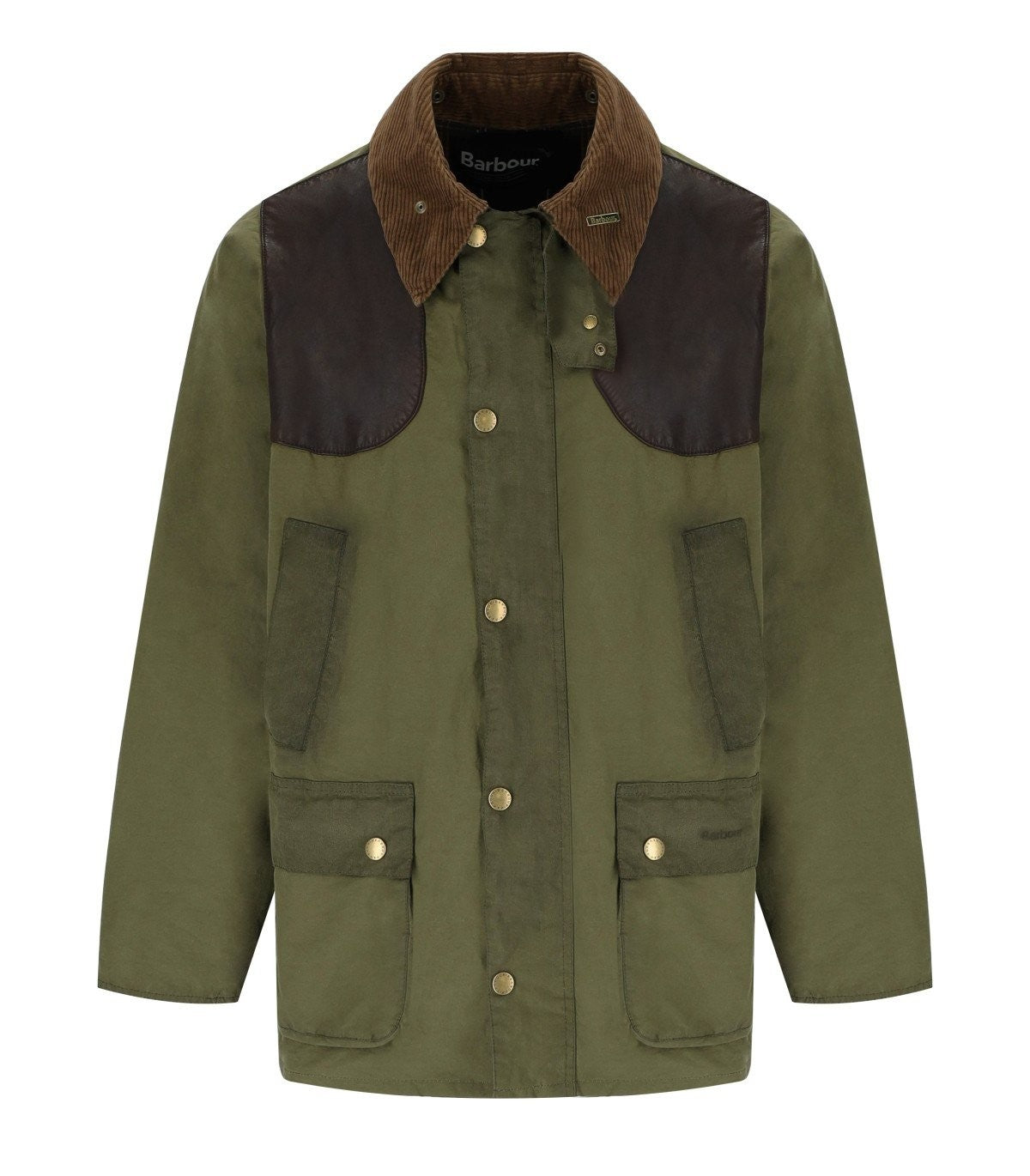 La chaqueta Barbour Bedale hecha de algodón encerado de efecto lavado en tonos de color verde oliva con detalles marrones. Caracterizado por un cierre con cremallera de dos vías en la parte delantera, presenta un collar de terciopelo terminado con detalles acanalados. Equipado con bolsillos de aleta con cierres automáticos de botones y bolsillos de aleta en el cofre. Terminado con cierres de botones en las aberturas posteriores de la prenda. Mejorada por una placa de logotipo de metal en el borde del collar y un logotipo bordado en el bolsillo de colgajo aplicado en el dobladillo. Ajuste regular. Composición de tela exterior: algodón 100% encerado. Forro: 100% algodón. Banda antidrip: 100% poliéster. Parche de hombro: 100% de cuero de vaca. Collar: 100% algodón.