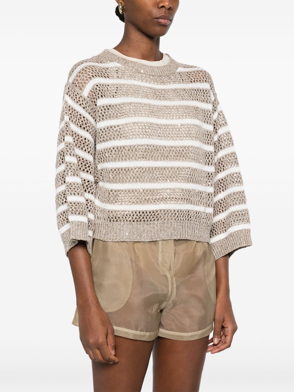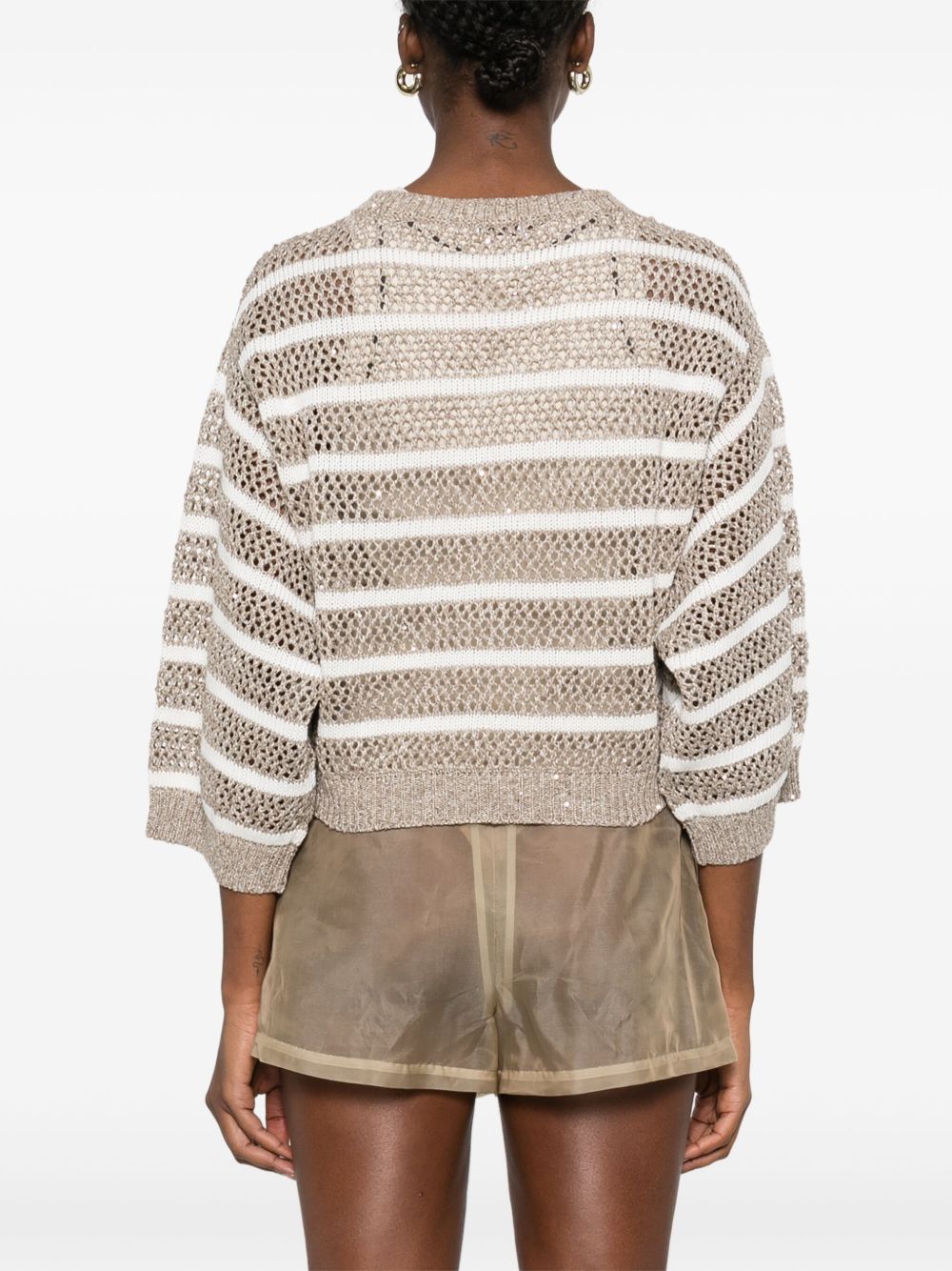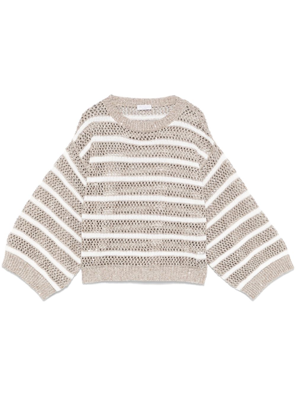 Suéter de cuello redondo de lino a rayas de Brunello Cucinelli