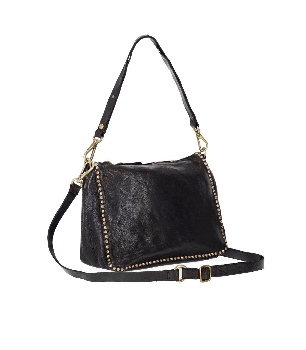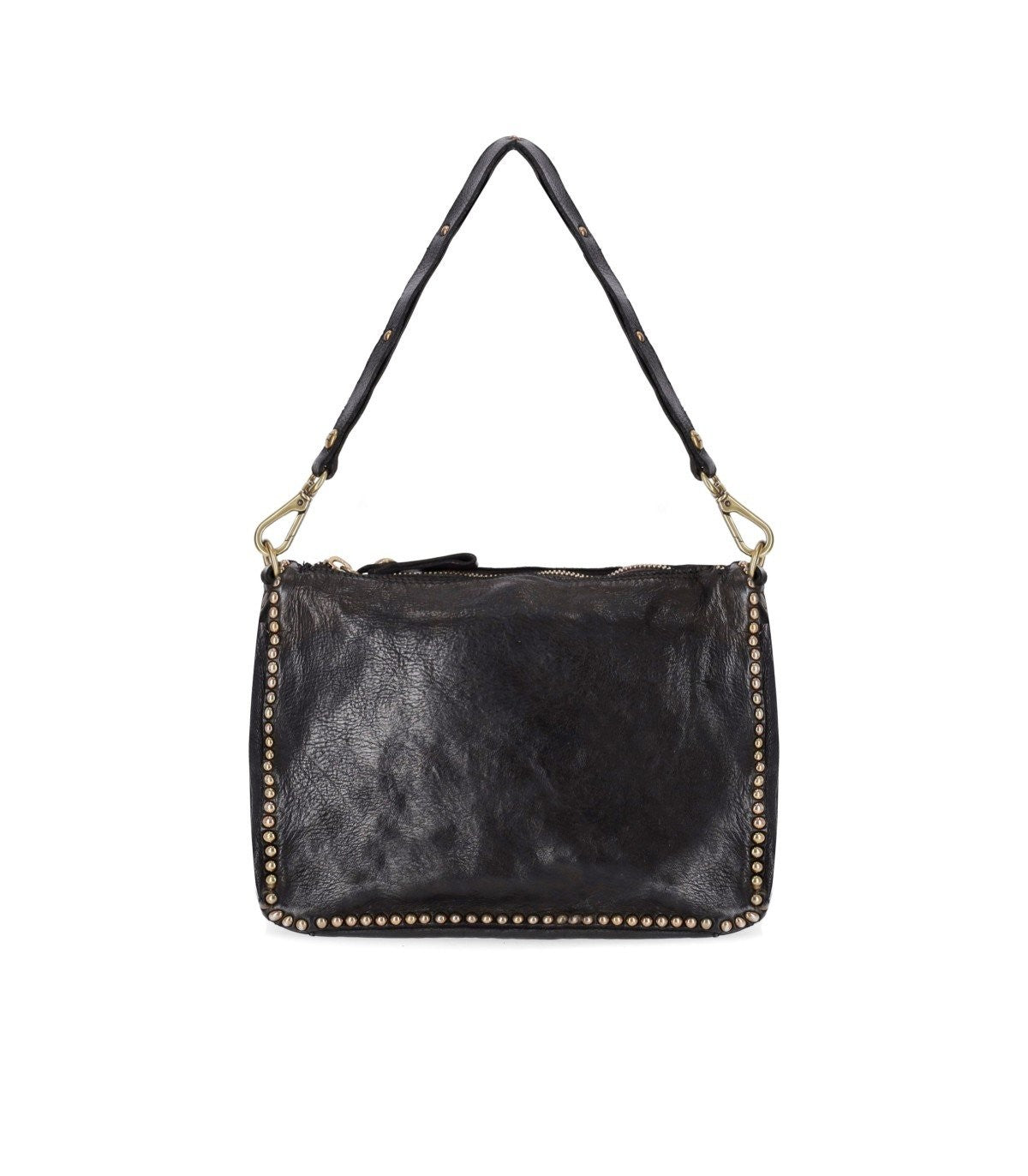 Bolso de hombro Campomaggi hecho de cuero lavado de cuero en negro. Caracterizado por Golden Hardware, presenta un cierre de cremallera. Equipado con un bolsillo con cremallera en el frente, está adornado con el logotipo de Campomaggi. Tiene un forro interno, un bolsillo de cremallera y una correa de hombro ajustable y extraíble. Adornado con tachuelas a los lados. Dimensiones 20x14x8 cm. Composición externa: 100% de cuero. Material interno: 100% algodón.