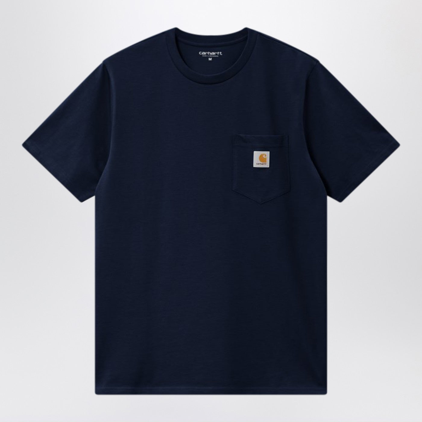 Camiseta de algodón de algodón estirado marino oscuro de Carhartt Wip con un escote redondo, mangas cortas y un bolsillo de parche de logotipo en el cofre.