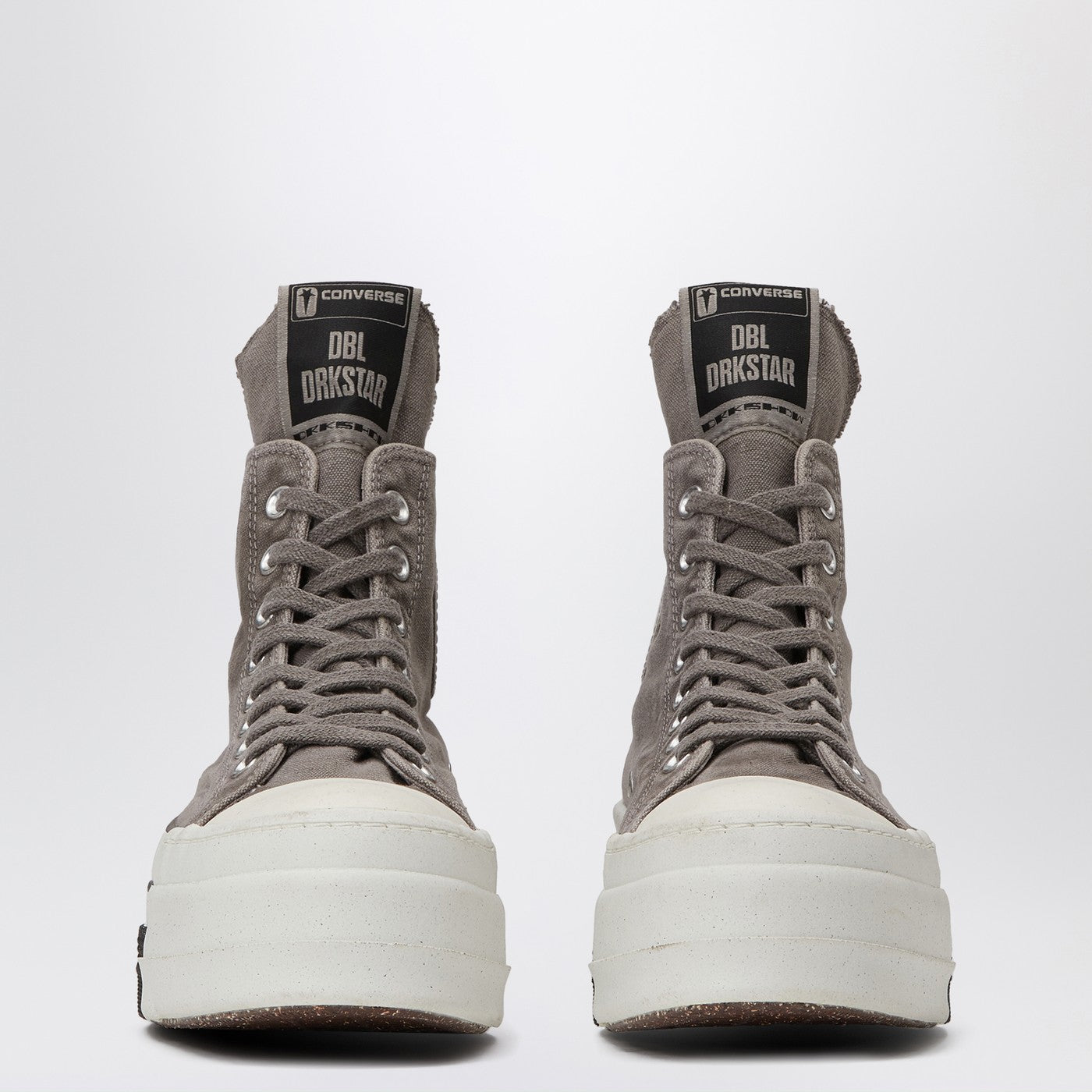 La zapatilla de zapatilla de Drkshdw hizo en colaboración con Converse en lienzo de color concreto, con una fijación de encaje, dedo redondo, lengua extendida con etiqueta del logotipo, logotipo Circular Converse All Star en el costado y una suela de plataforma de goma con el logotipo.