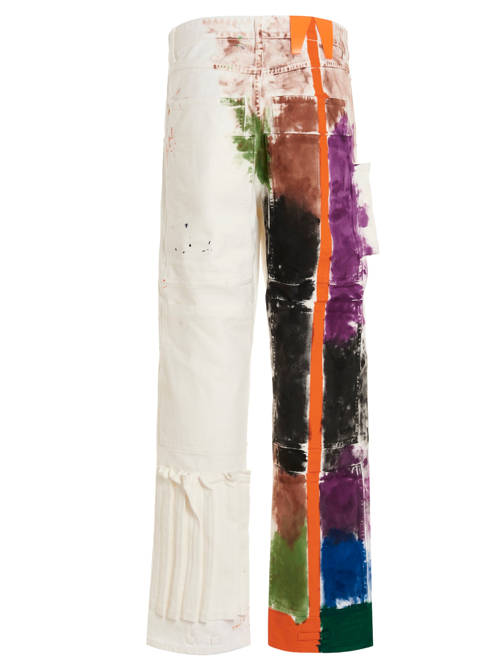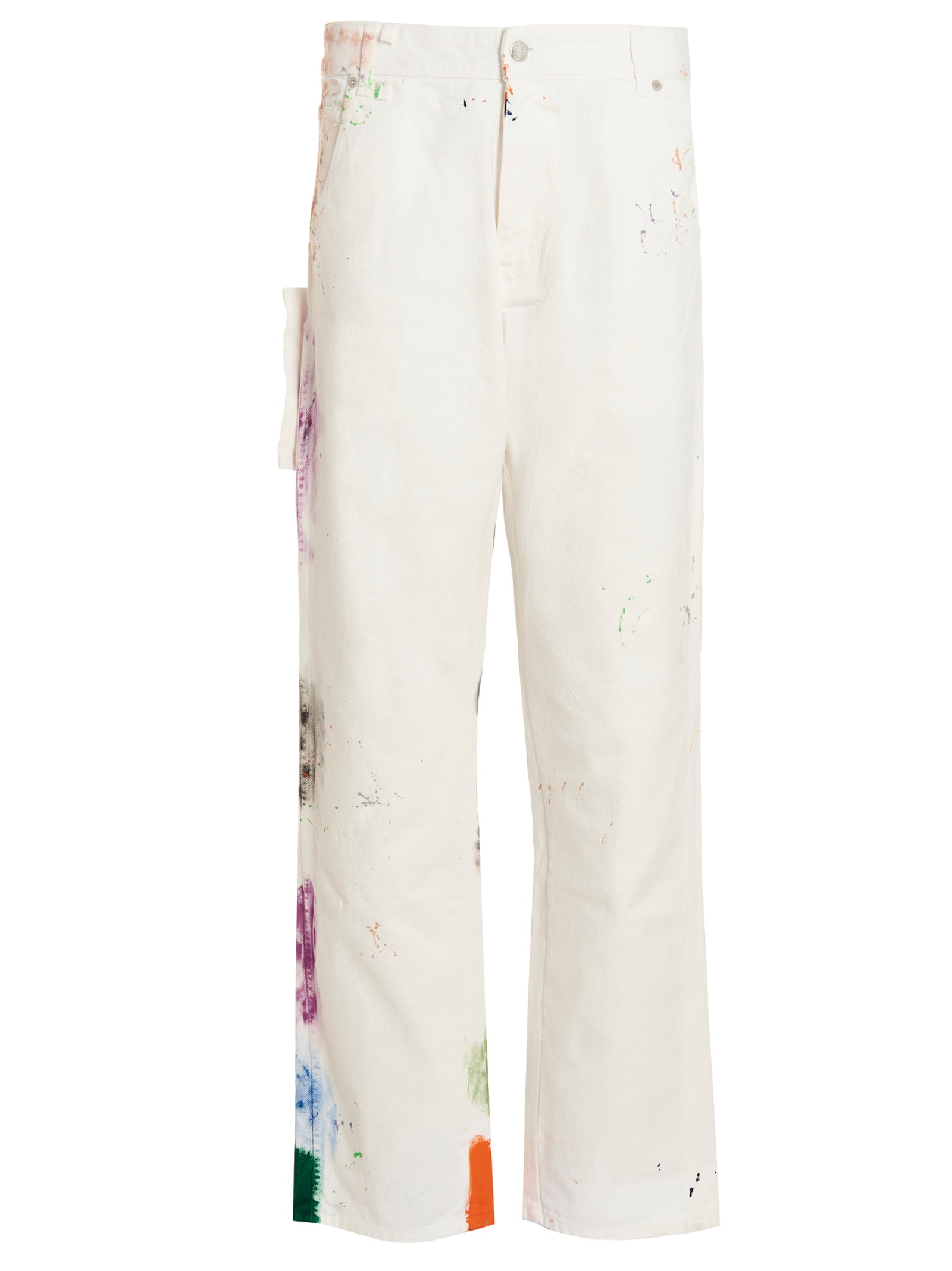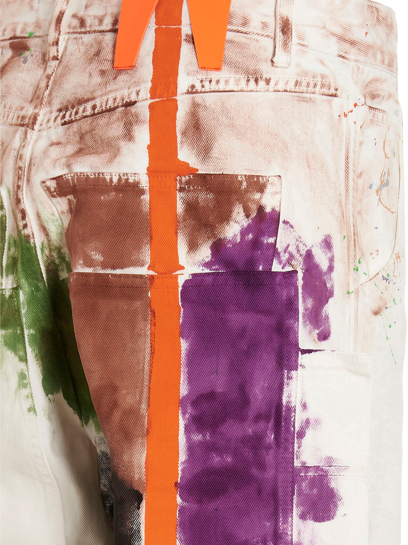 Jeans de mezclilla de algodón 'Indron' con cremallera y cierre de botones, bolsillos y detalles de pintura múltiple.