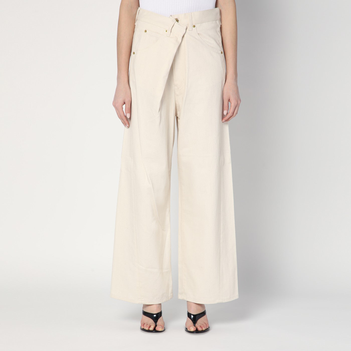 Wide Jeans de Darkpark en mezclilla de algodón marfil, con un cierre delantero asimétrico, bucles de cinturón, cinco bolsillos clásicos y un parche de logotipo posterior.