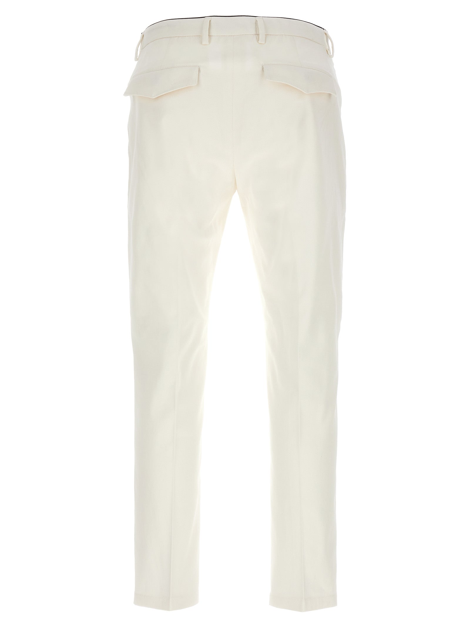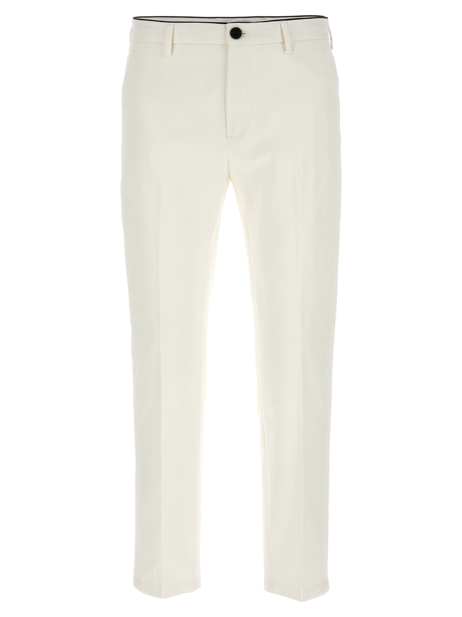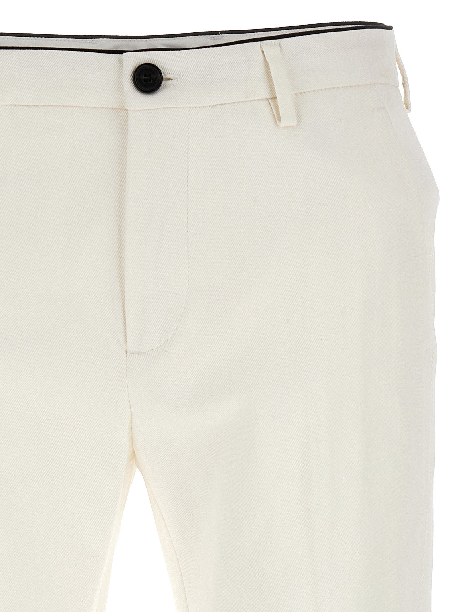 Pantalones de algodón con teñidas naturales del Príncipe con tuberías de contraste en la cintura, pierna recta con pliegue central, cierre de cremallera y botón, bolsillos.