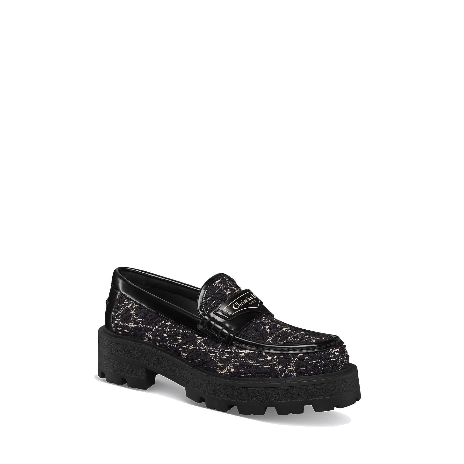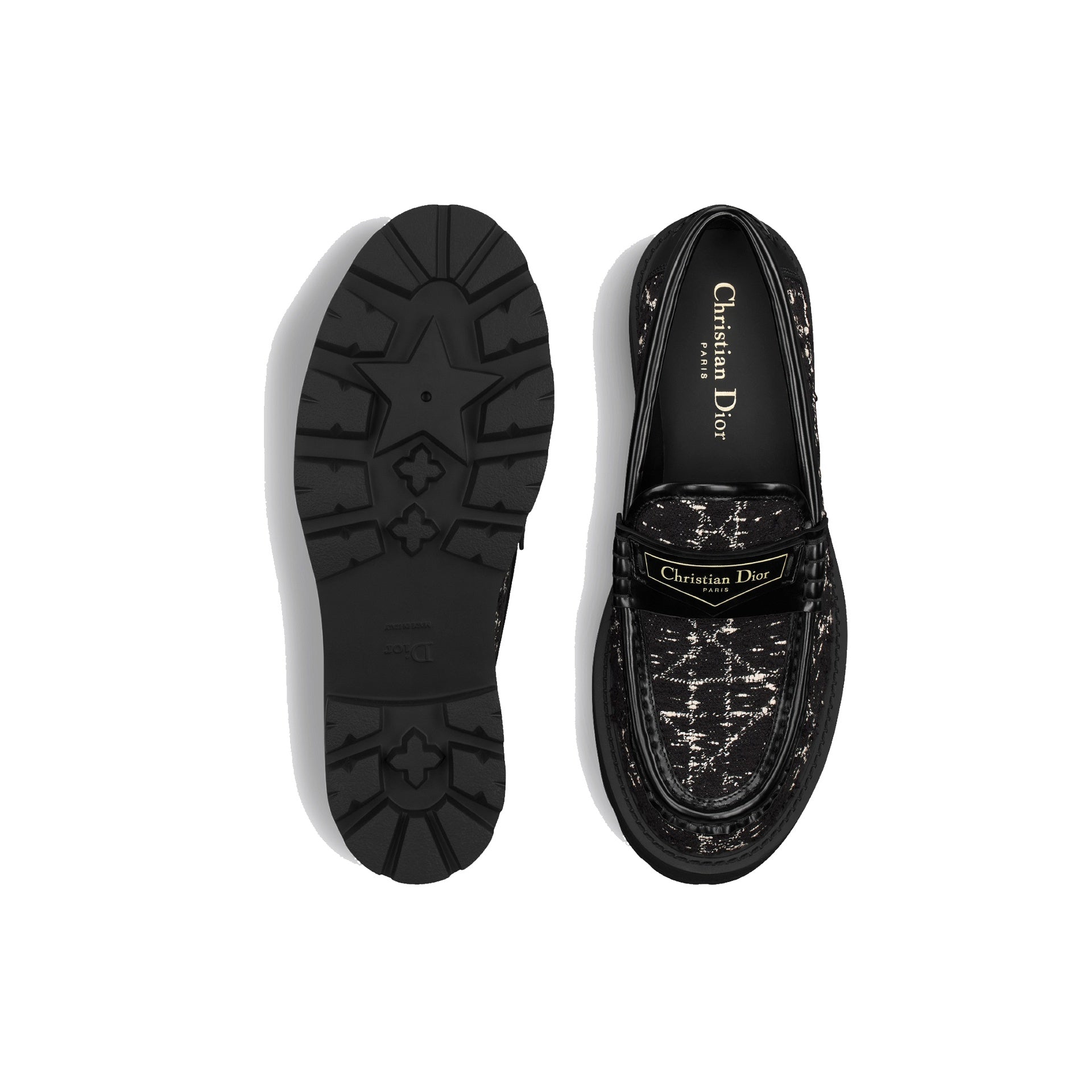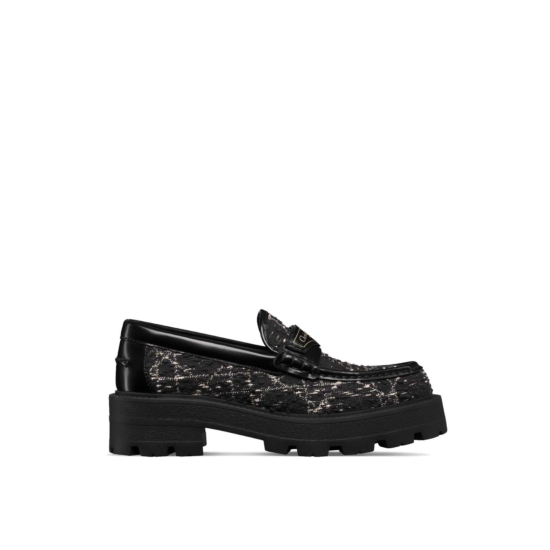 Composition100% cotton inner: leather insole: leather sole: rubber round toe leather detail branded insole goldtone christian dior paris signature on the front thick black eva sole with star, christian dior's lucky symbol black and white cannage tweed platform: 5.5 cm made in italy