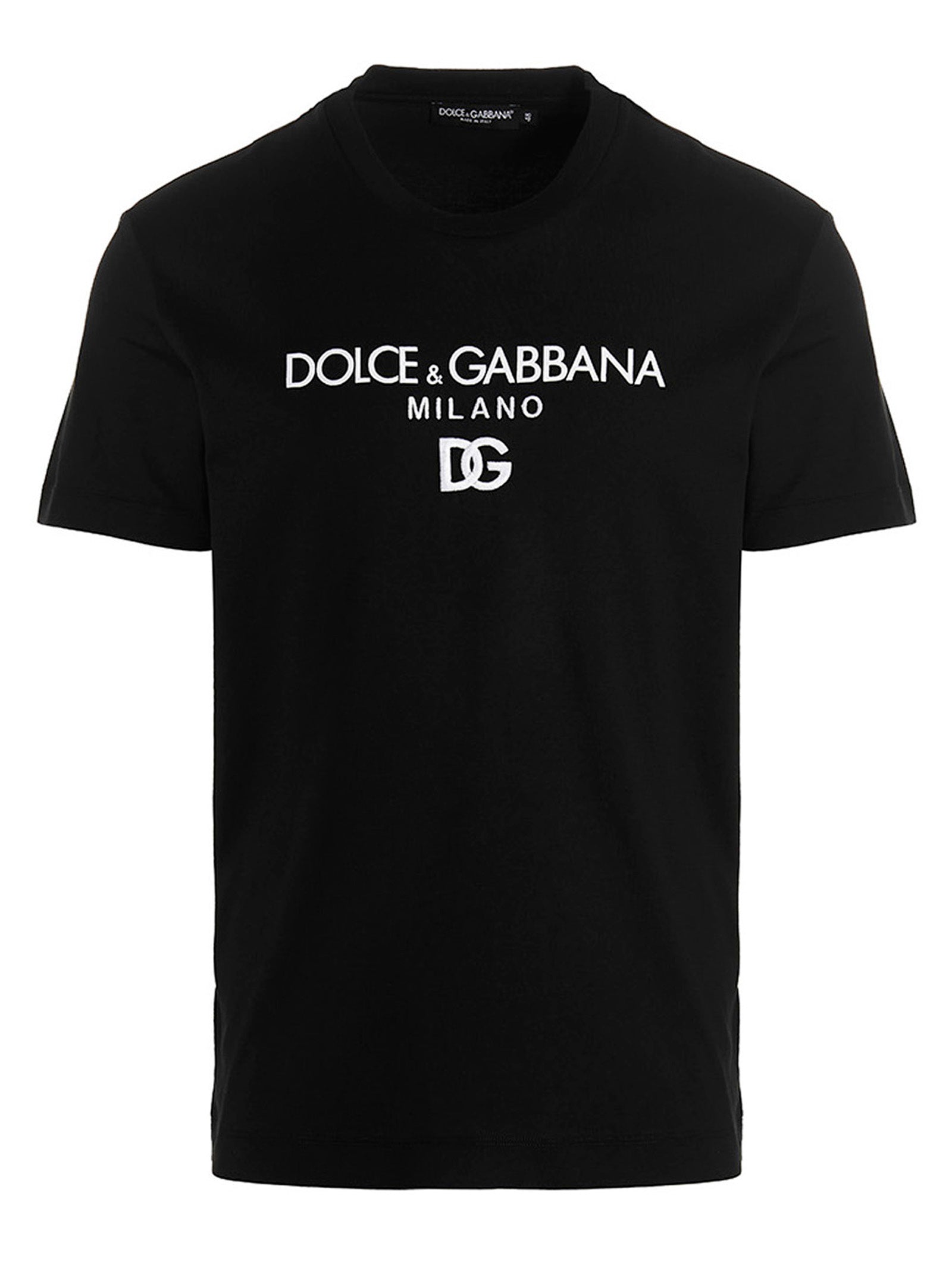Camiseta de algodón 'DG Essential ", camiseta de cuello tripulado con bordado delantero y un logotipo de Flocked, y mangas cortas.