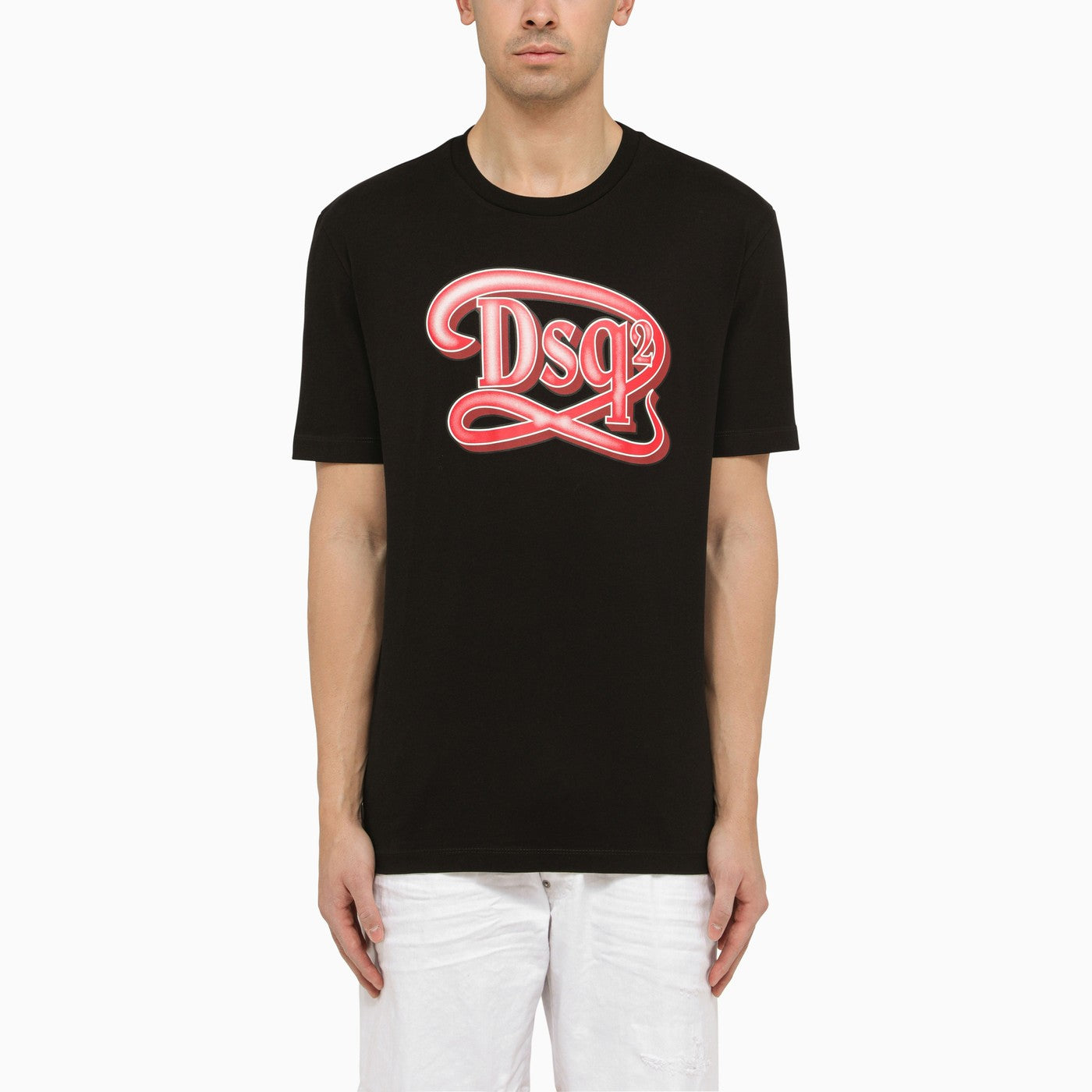 Camiseta de cuello de equipo de algodón negro de DSquared2 con mangas cortas, un estampado del logotipo delantero y un dobladillo recto.