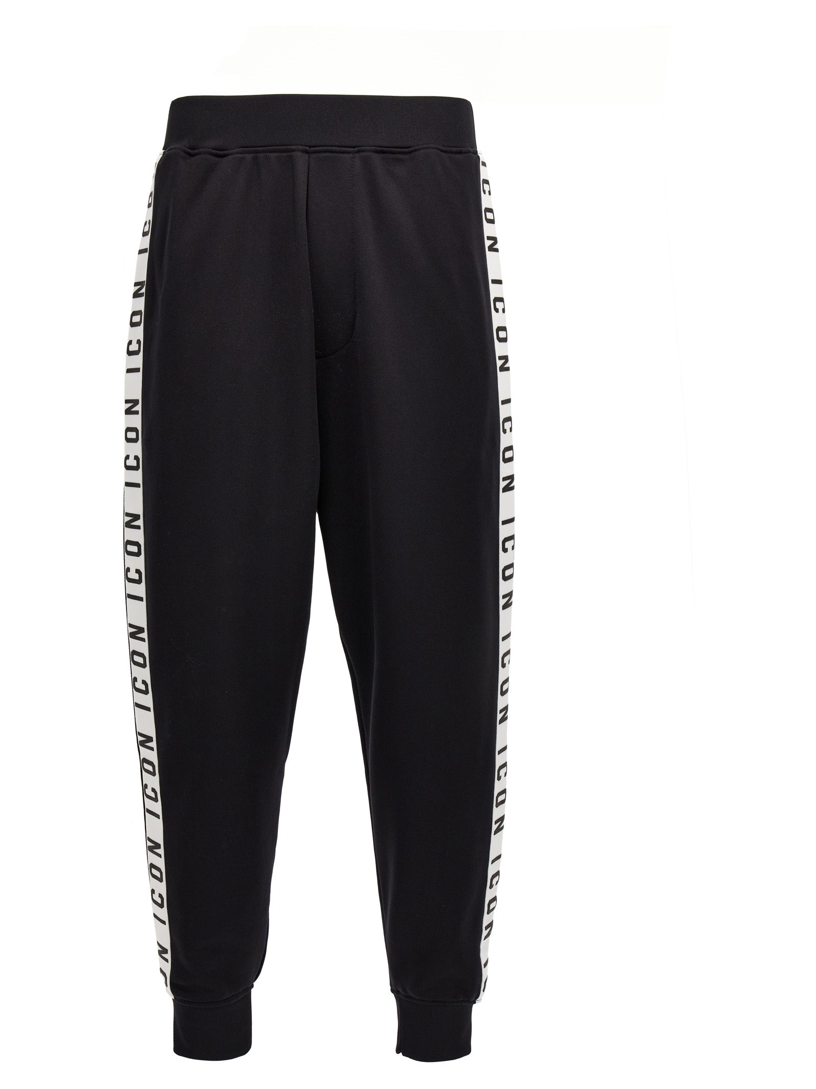 Joggers íconos en tela técnica de mezcla de algodón con bandas laterales contrastantes con estampado del logotipo, cintura elástica, bolsillos y manguito elástico del tobillo.
