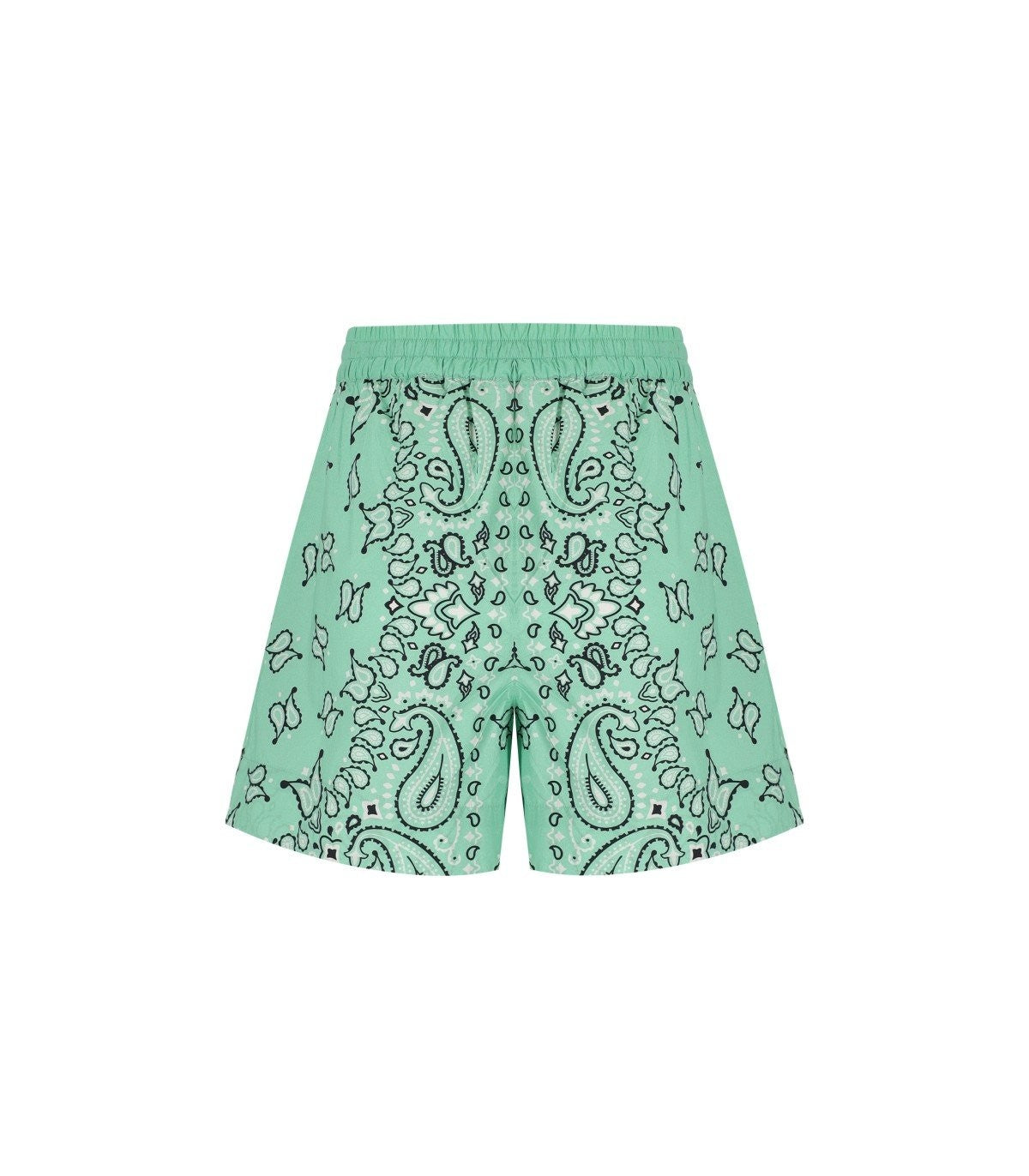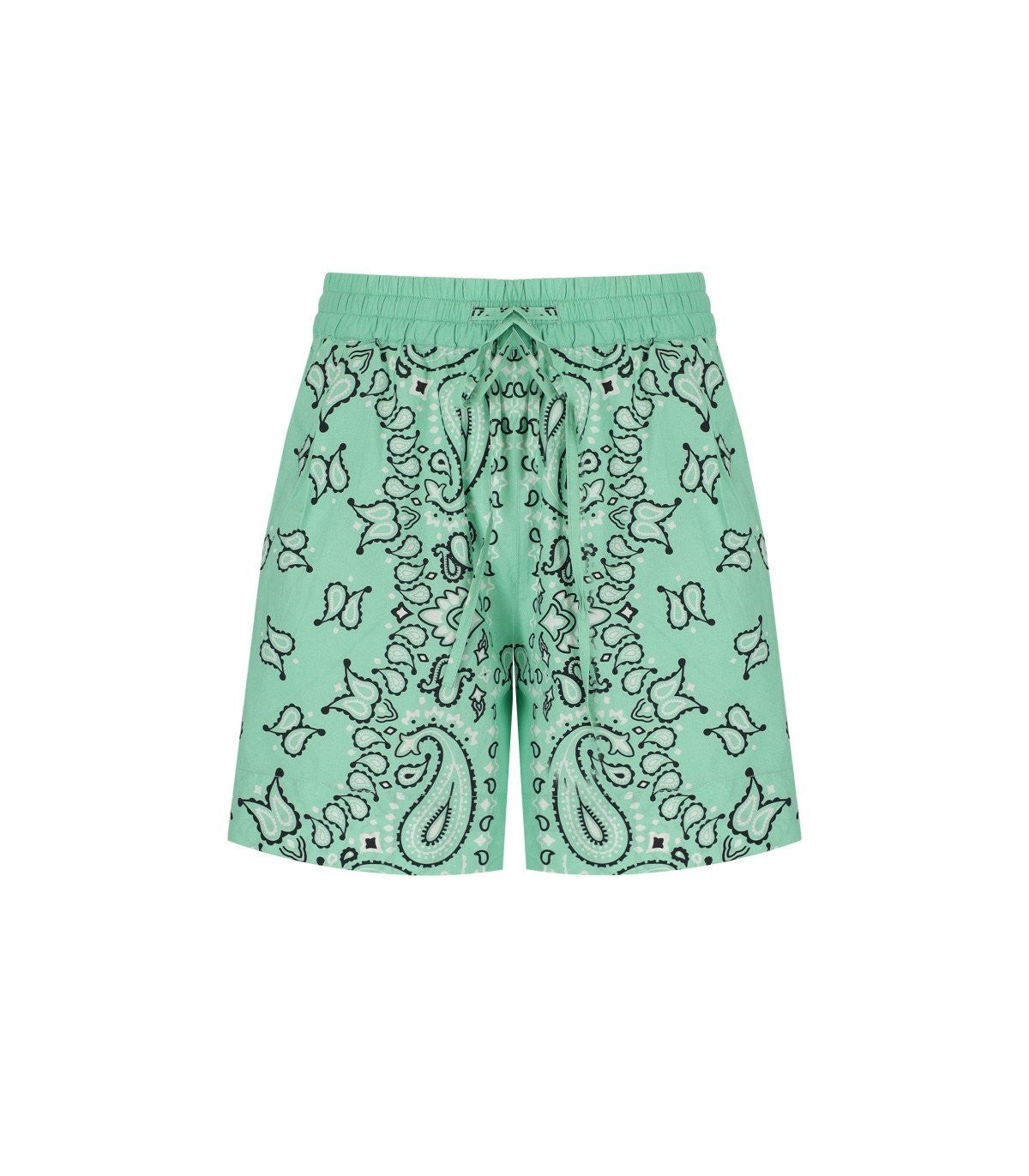 Shorts Amberes de Essentiel hechos de algodón verde aqua con un patrón de pañuelo contrastante. Cintura elástica ajustable, bolsillos laterales. Fit relajado. Composición: 100% algodón.