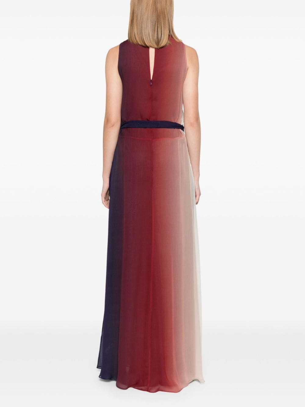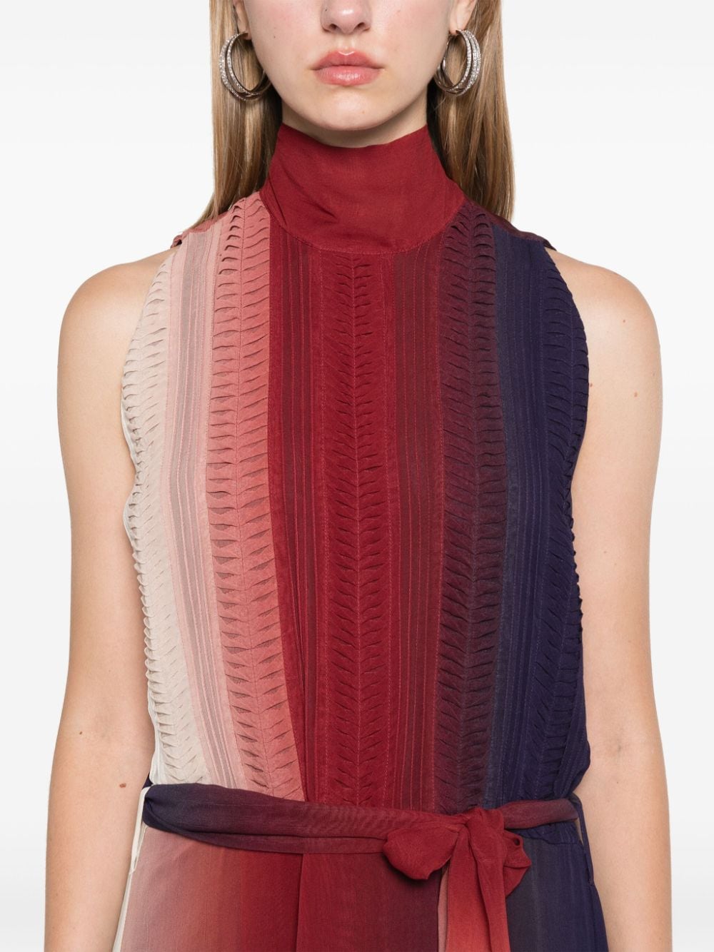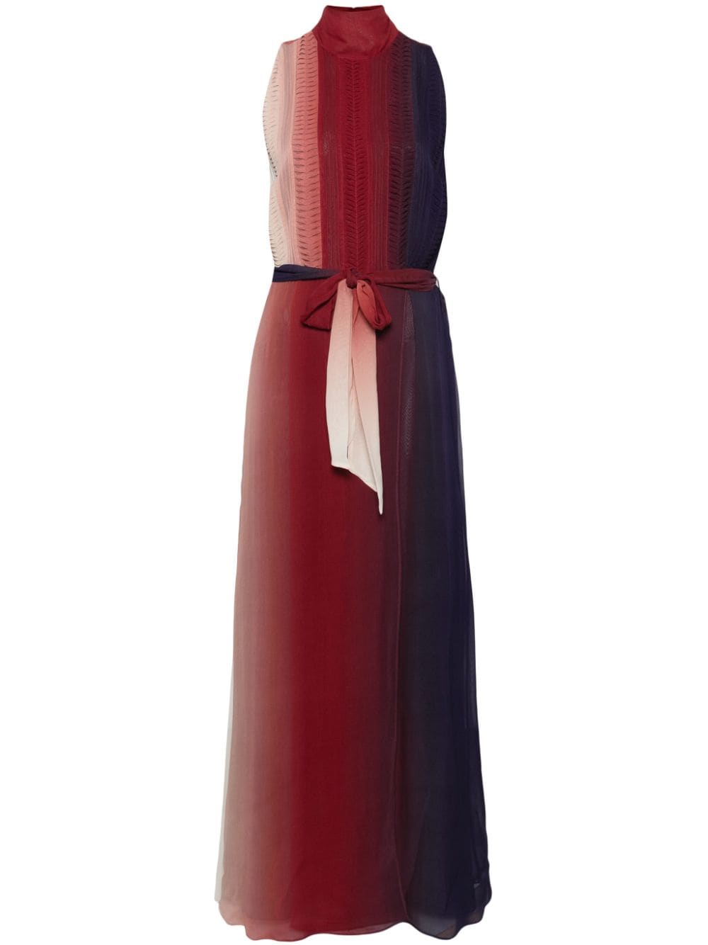 Multicolor Georgette Ombré Efecto de pliegues Detalles de la cremallera trasera Cinturón de cintura desmeloso de cuello alto abierta hacia atrás