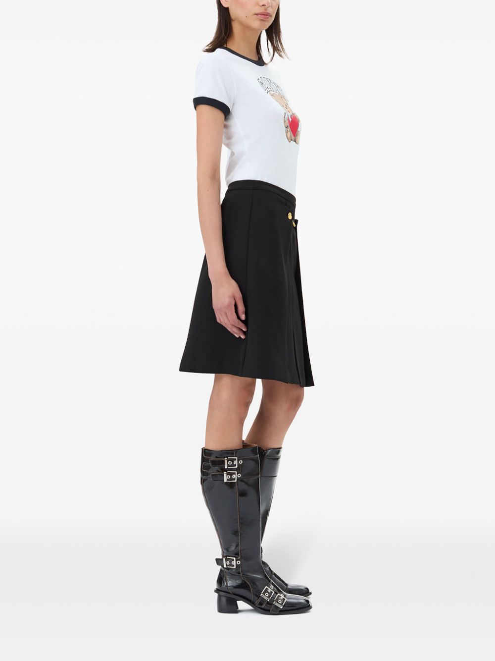 black/white logo print to the front teddy bear print round neck short sleeves straight hem