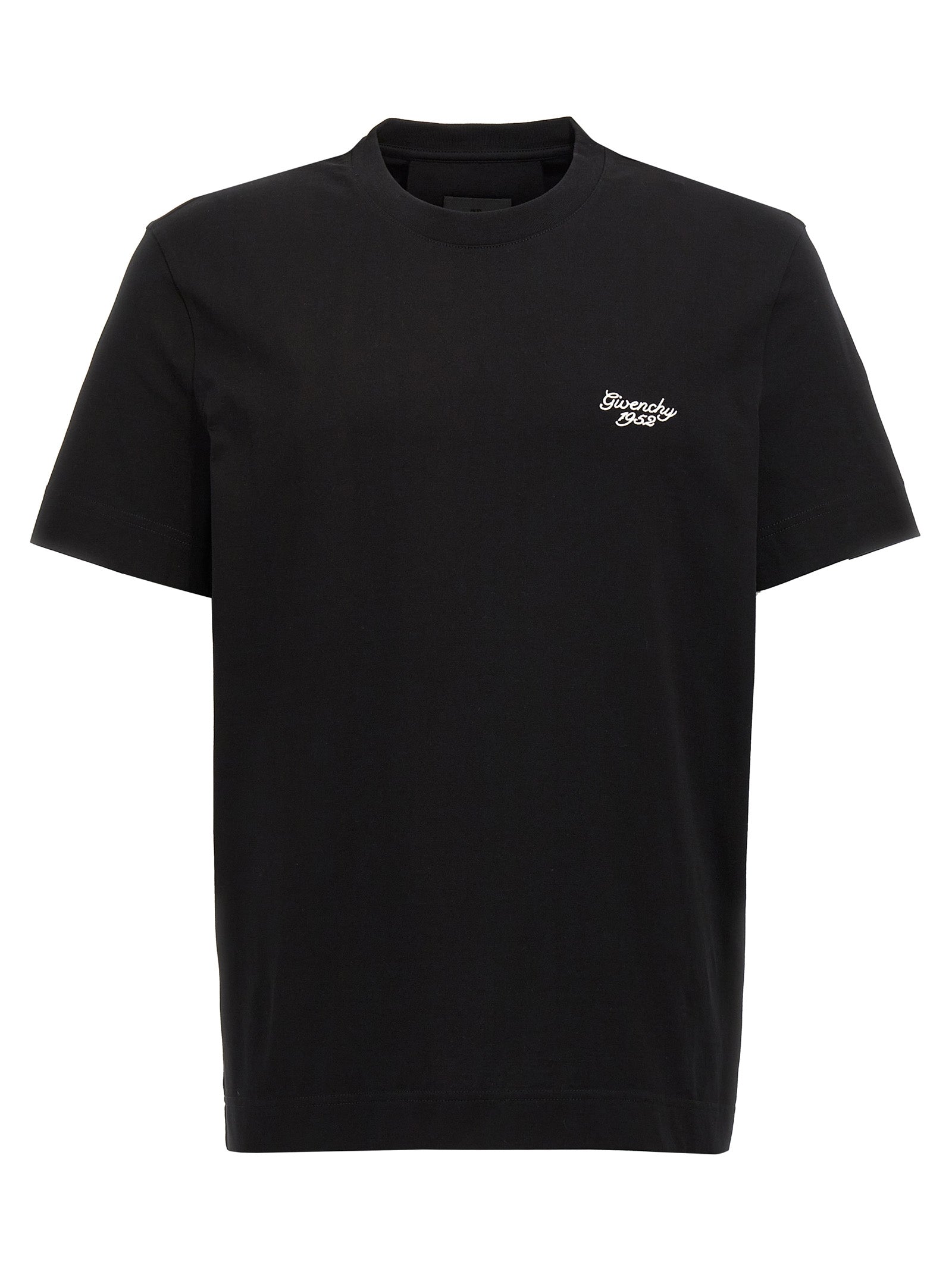 Camiseta de algodón, cuello de la tripulación con bordado del logotipo, mangas cortas.