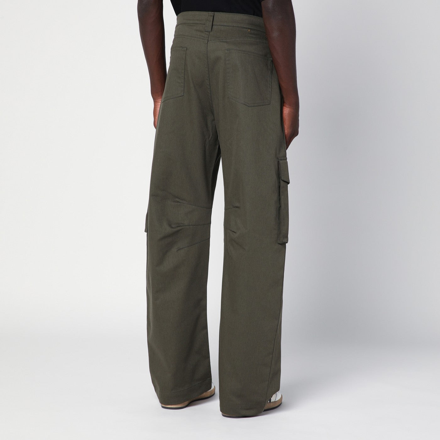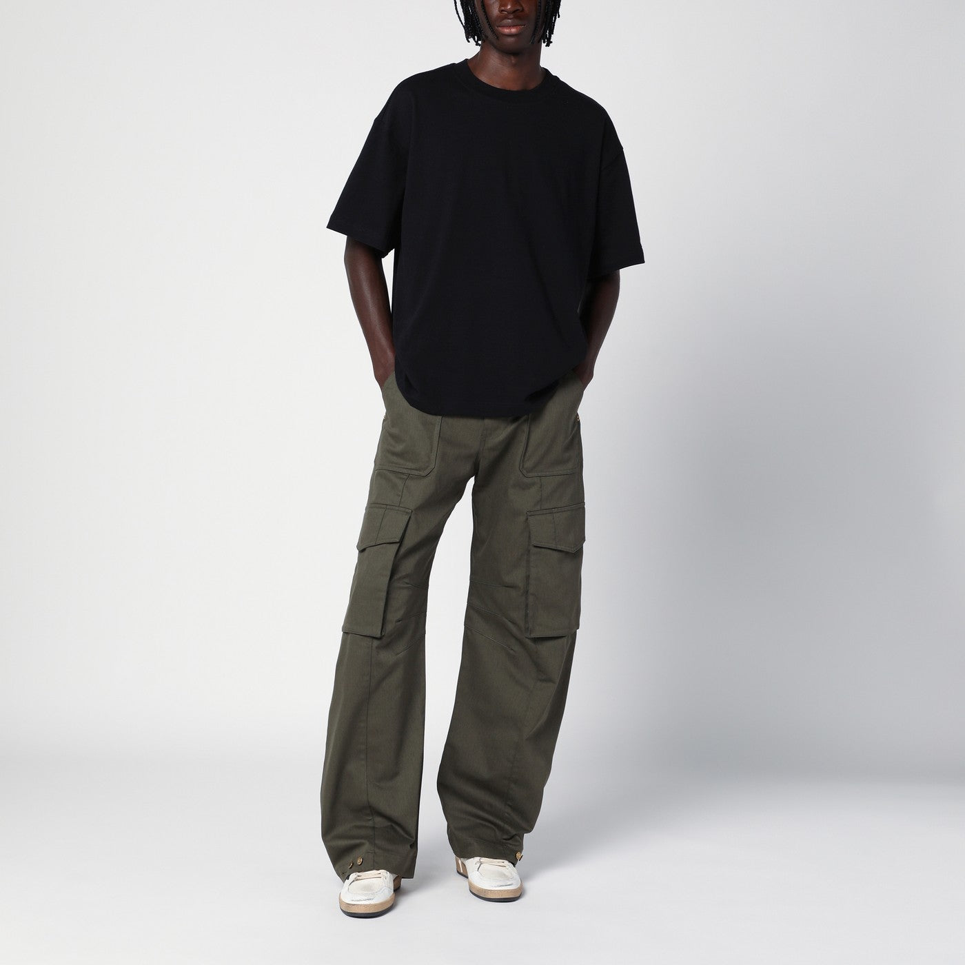 Mezclar pantalones de carga de la marca Golden Goose Deluxe en algodón verde Ivy con bucles de cinturón, un botón frontal y cierre de cremallera, dos bolsillos laterales de parche, dos bolsillos de carga laterales, dos bolsillos traseros y una estrella de logotipo doble en la parte posterior.